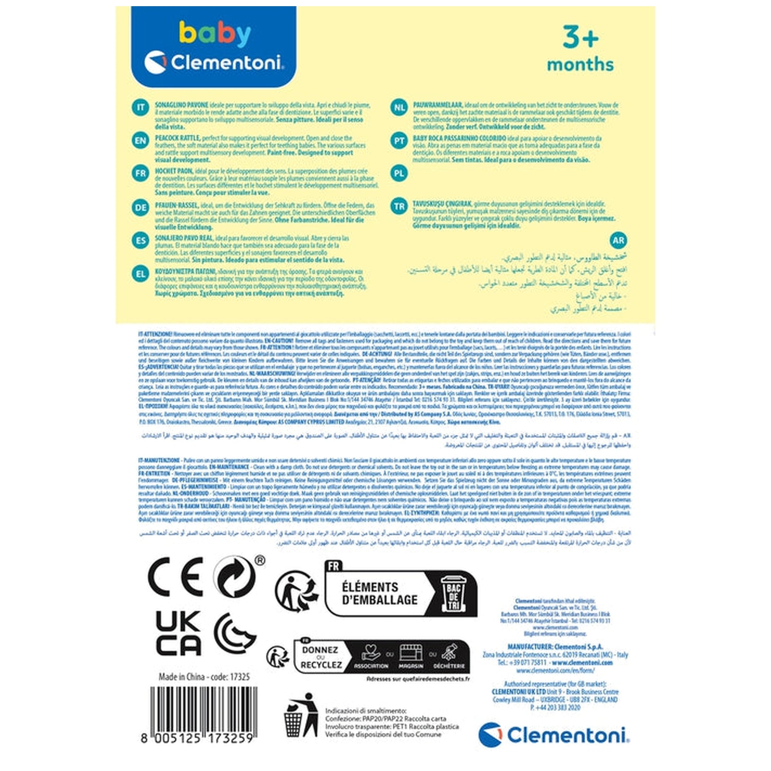 Baby Clementoni - Sonajero Pavo Real Arcoíris