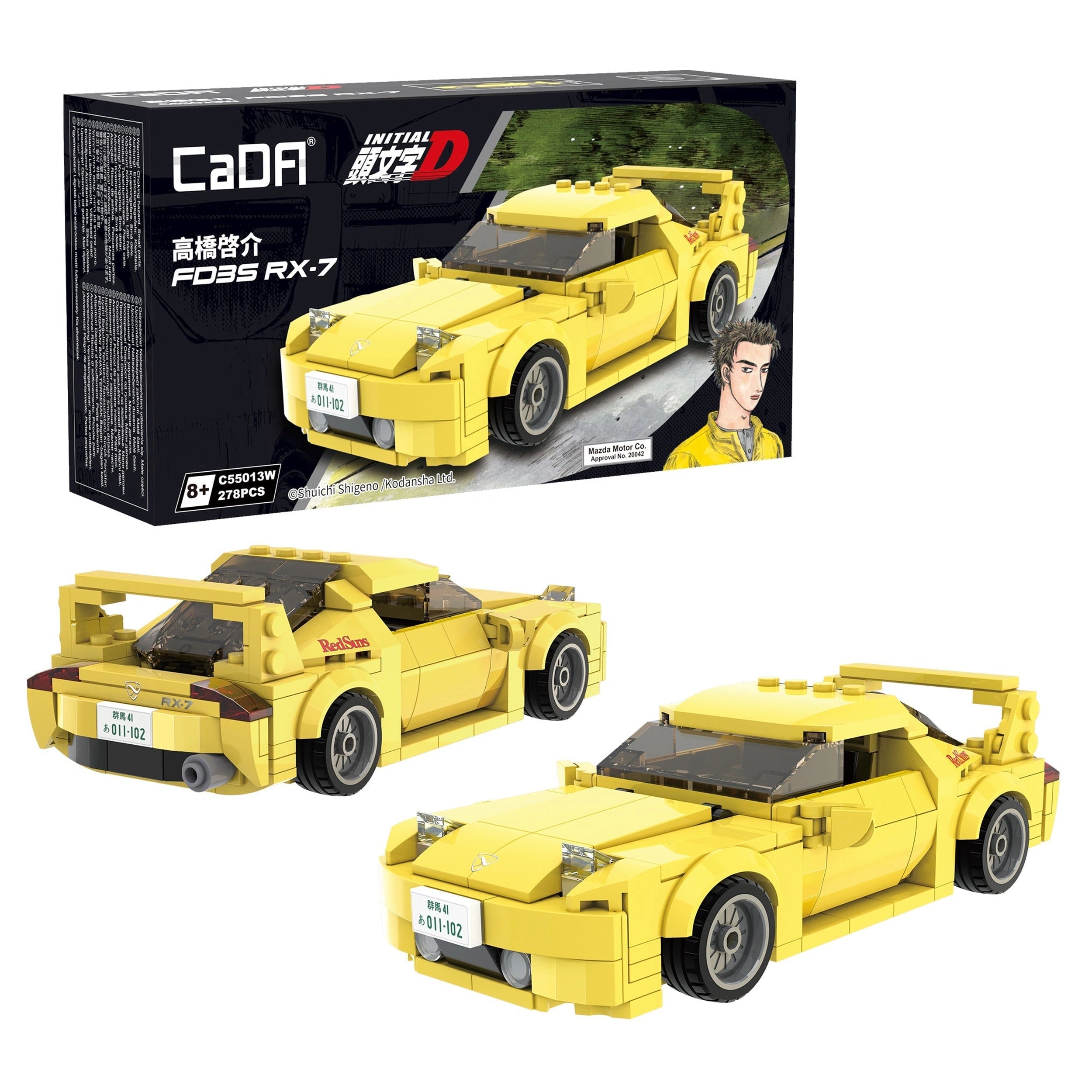 Introducing the CaDA Initial D 1:24 Mazda RX-7 FD3S C55013W Yellow - Construction Set Toys, a meticulously crafted building kit that brings the iconic sports car from the beloved anime and manga series, Initial D, right into your hands. This model is not just a toy; it is a celebration of automotive excellence and a tribute to the rich culture of street racing depicted in the series. With its vibrant yellow finish and authentic design, this collectible piece is perfect for both fans of the show and car enthusiasts alike.
