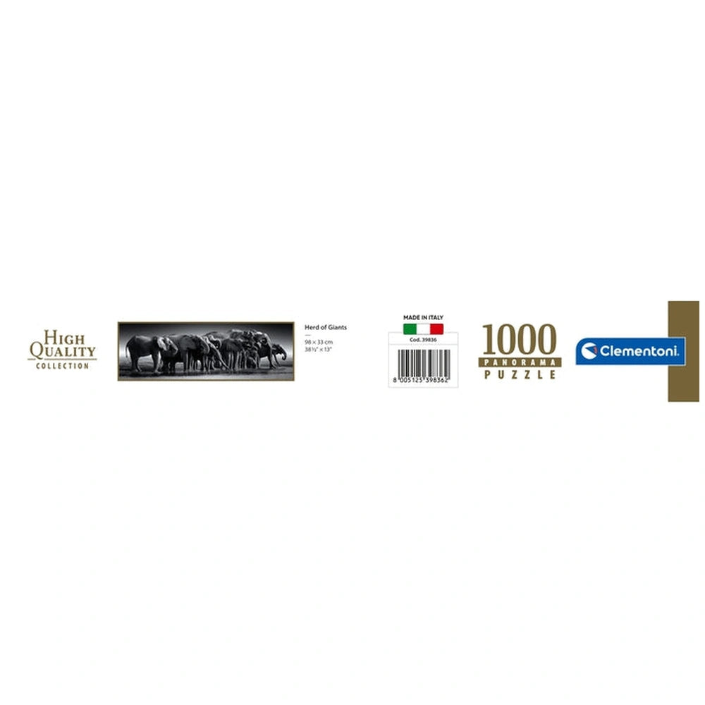 Introducing the Clementoni High Quality Collection - Herd Of Giants 1000 Pcs Puzzle Panorama, a captivating puzzle designed for adults who appreciate intricate details and stunning imagery. This exceptional puzzle features a panoramic view of majestic giants, inviting you to immerse yourself in a world of breathtaking landscapes and vibrant colors. With a completed size of 98 x 33 cm, this puzzle not only serves as a delightful challenge but also transforms into a striking piece of art that can enhance any living space.