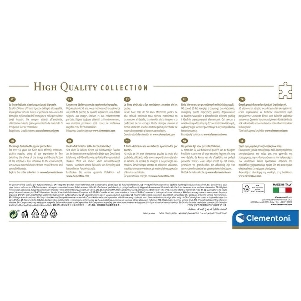 Clementoni is renowned for its commitment to quality and sustainability. This puzzle is made in Italy, reflecting the brand's dedication to craftsmanship and design excellence. In line with their ecological values, Clementoni utilizes recycled materials in the production of their puzzles, minimizing environmental impact and promoting a greener planet. This conscientious approach ensures that you can enjoy your puzzle with the knowledge that you are supporting eco-friendly practices.