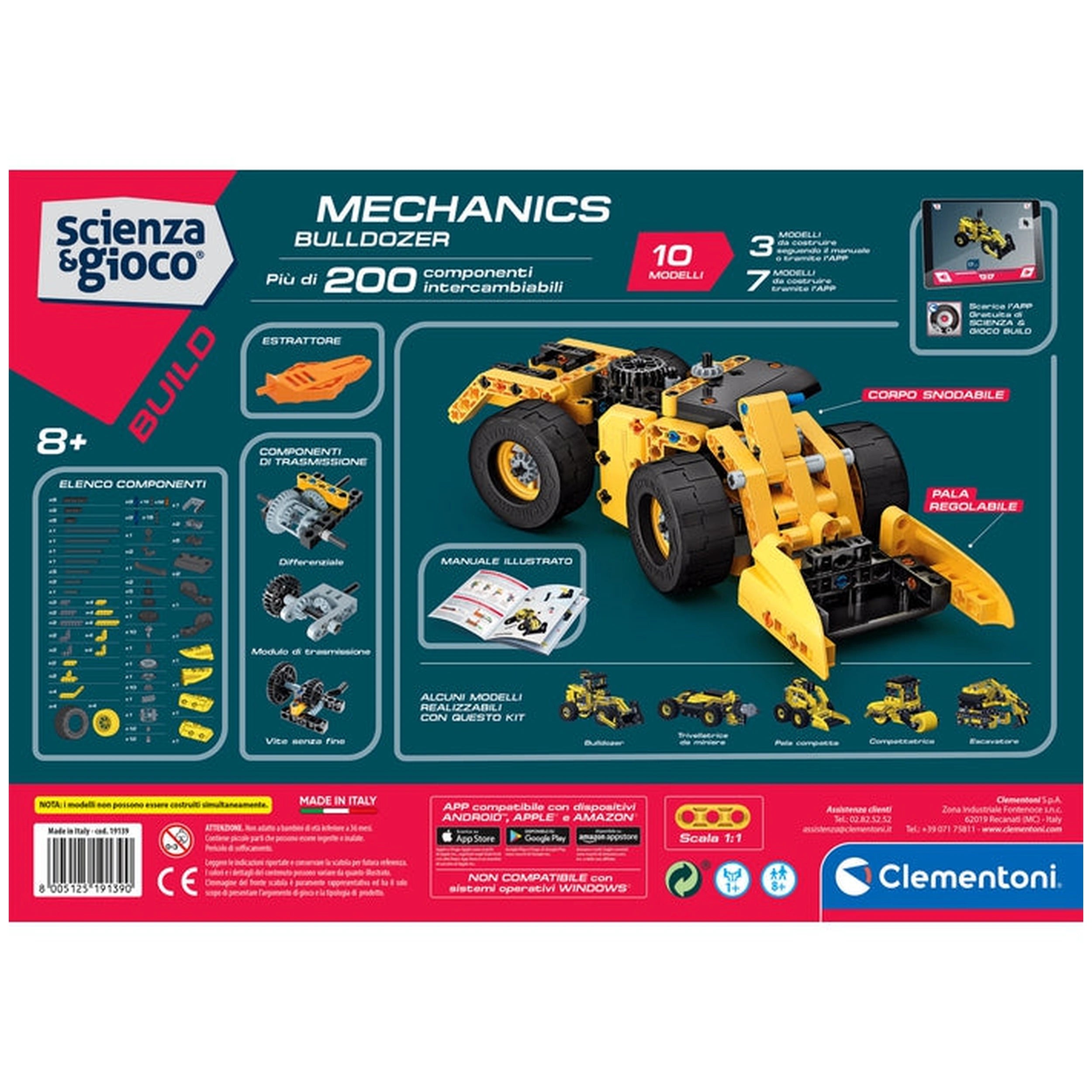 Introducing the Clementoni Scienza E Gioco Build - Mechanics Build 10 Models - Bulldozer Construction Set, an innovative and engaging construction toy designed to inspire young engineers and builders. This exceptional set allows children aged 8 and above to construct a bulldozer compactor and nine additional models of construction machinery, fostering creativity and critical thinking skills. With over 200 components, this set provides endless opportunities for imaginative play and hands-on learning.
