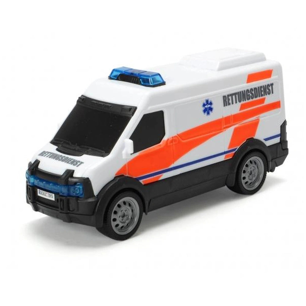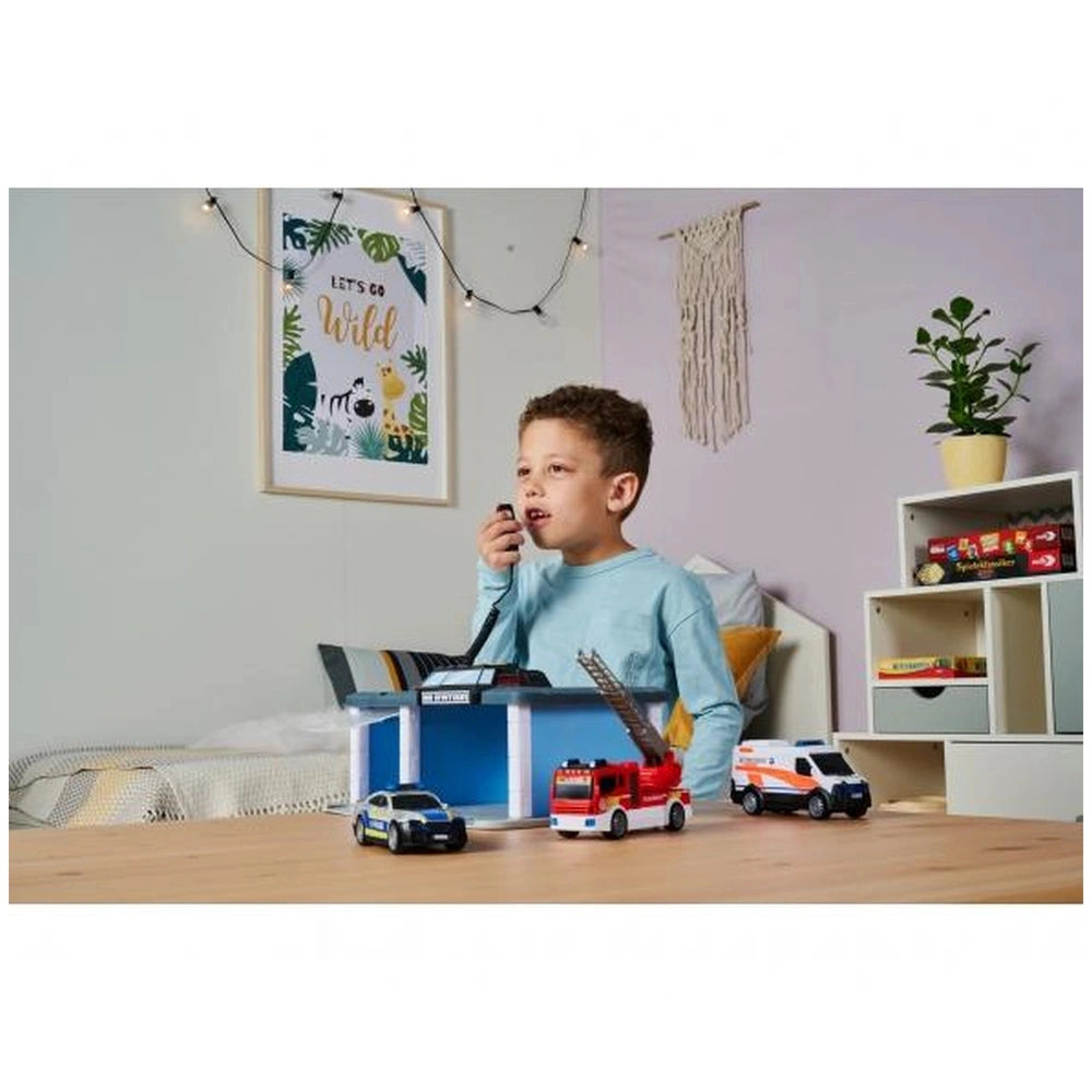 The Dickie Rescue Center is a large, intricately designed station measuring 31 x 22 x 16 cm, providing ample space for three essential emergency vehicles: a police car, an ambulance, and a fire engine. Each vehicle is crafted with attention to detail, ensuring that they not only look realistic but also enhance the play experience. When an emergency call comes in, children can open the garage doors and send the vehicles racing into action, fostering a sense of urgency and excitement in their imaginative play.