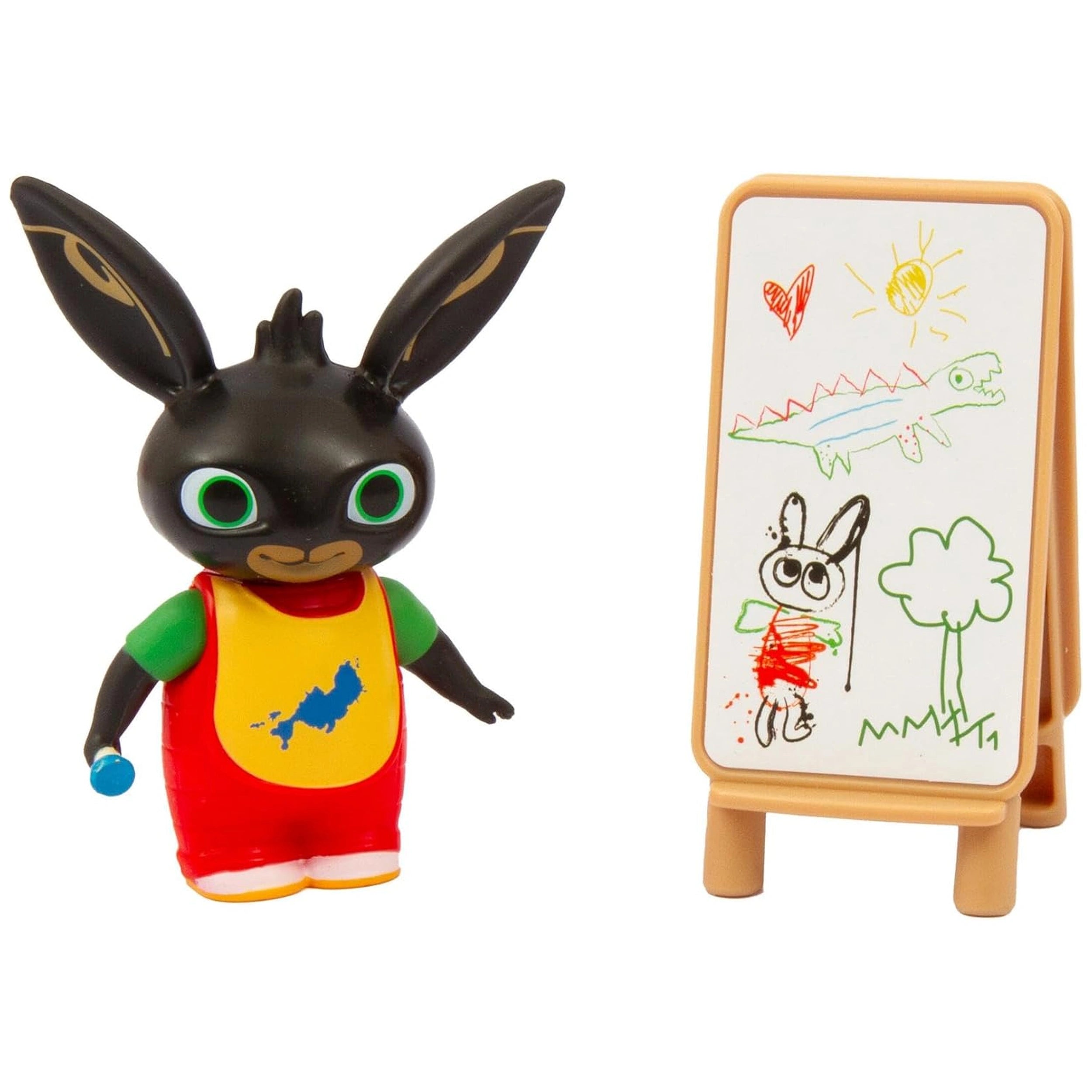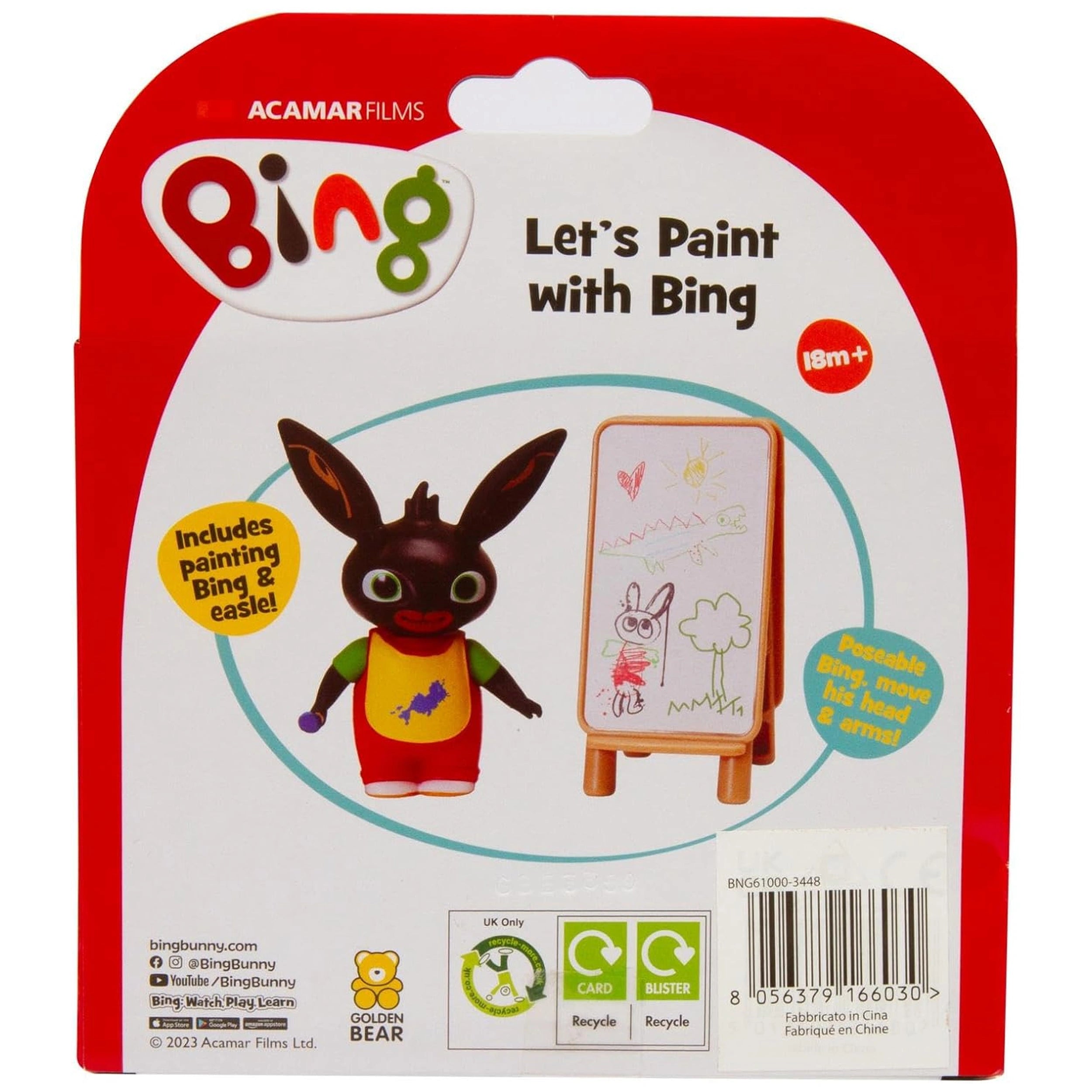 Introducing the GOLDEN BEAR - Let's Paint with Bing Action & Toy Figures, a delightful addition to any child's toy collection that encourages creativity and imaginative play. This innovative toy features Bing, a beloved character, dressed in a painter's apron and equipped with a double-sided easel, making it perfect for young artists eager to explore the world of art. The design not only captures the essence of Bing but also provides children with the tools they need to engage in creative storytelling and artistic expression.
