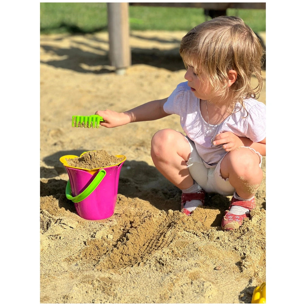 One of the standout features of the Gowi Flower Bucket Set is the unique stamp located on the bottom of the bucket. This innovative addition allows children to create beautiful flower patterns in the sand, adding an artistic element to their playtime. This feature not only enhances creativity but also provides an opportunity for children to learn about shapes and patterns in a fun and engaging way.