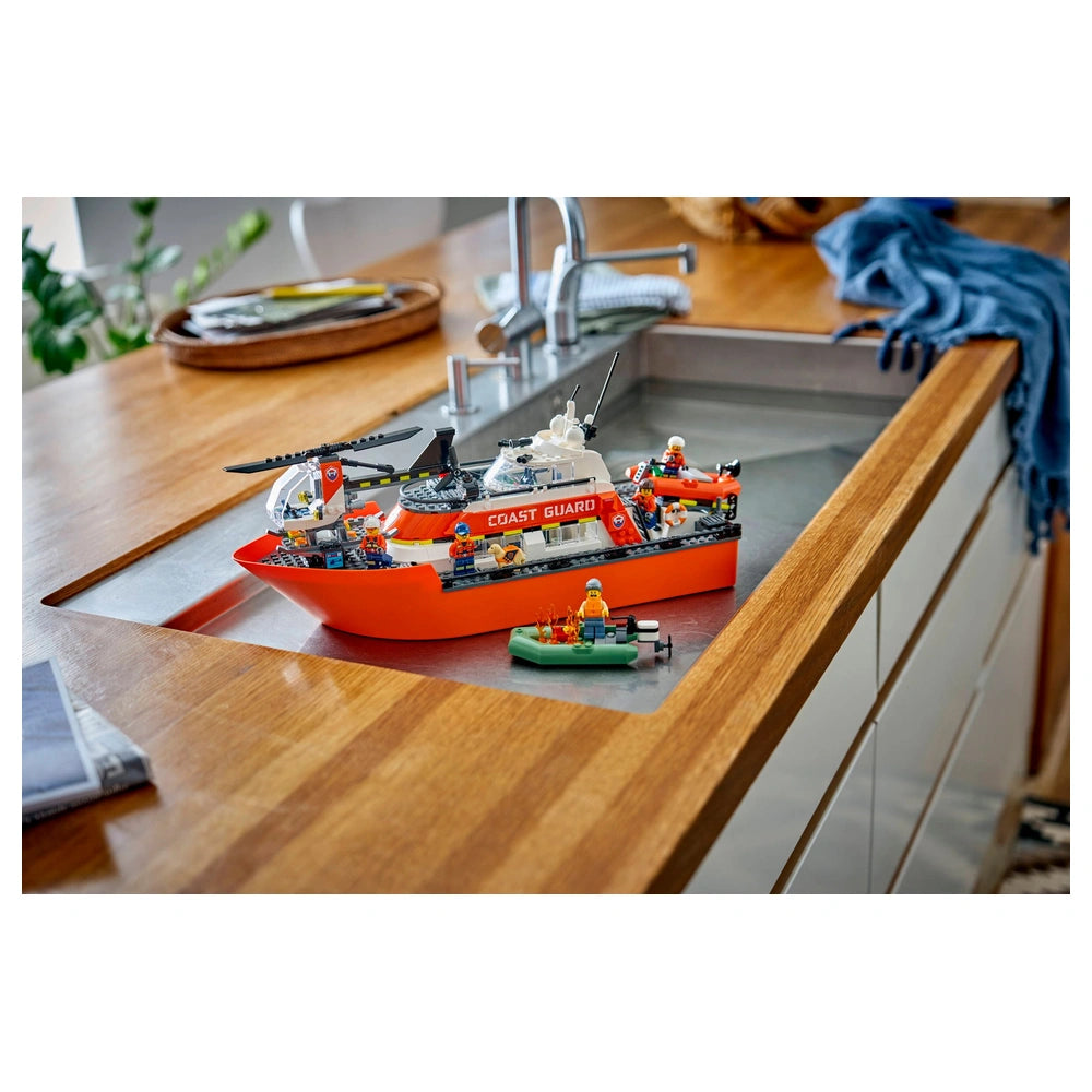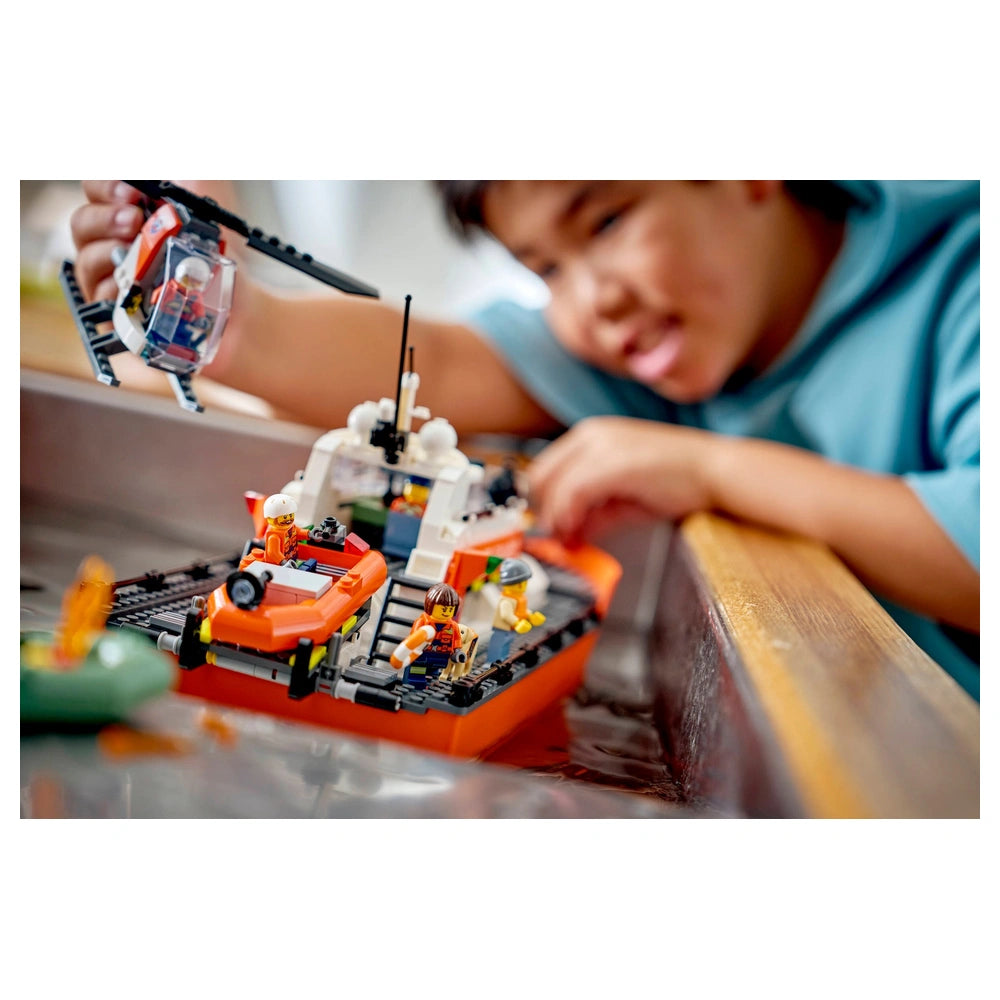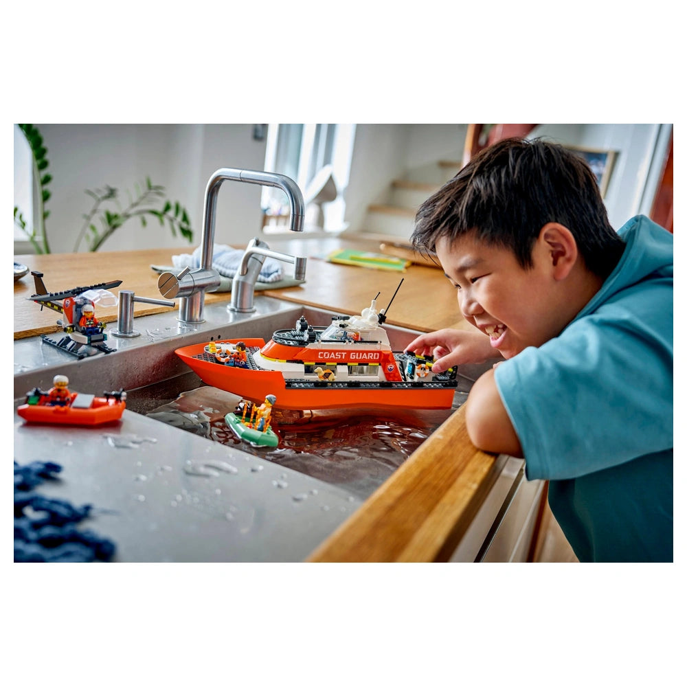 LEGO - Barco de Rescate de la Guardia Costera y Helicóptero - Juguetes de Set de Construcción