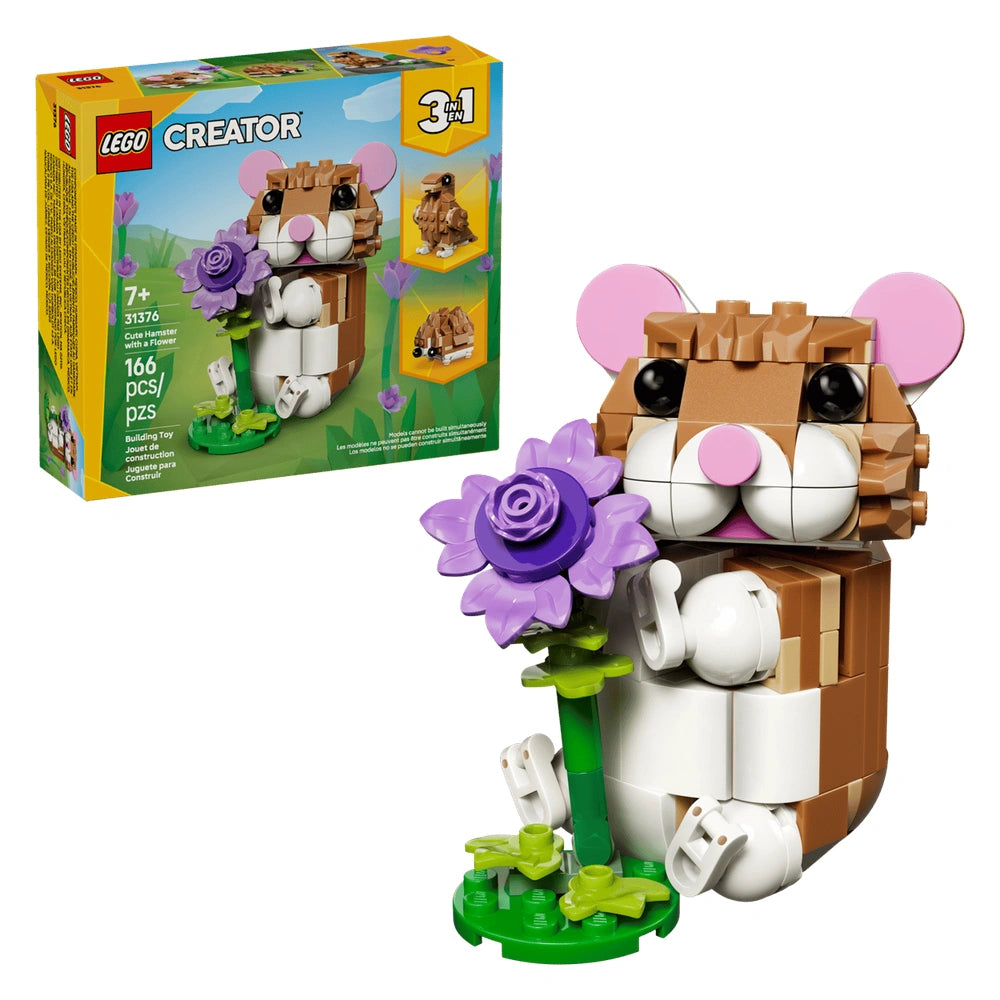 LEGO - Creador 3 en 1 Hamsterito Adorable con una Flor - Juguetes de Construcción