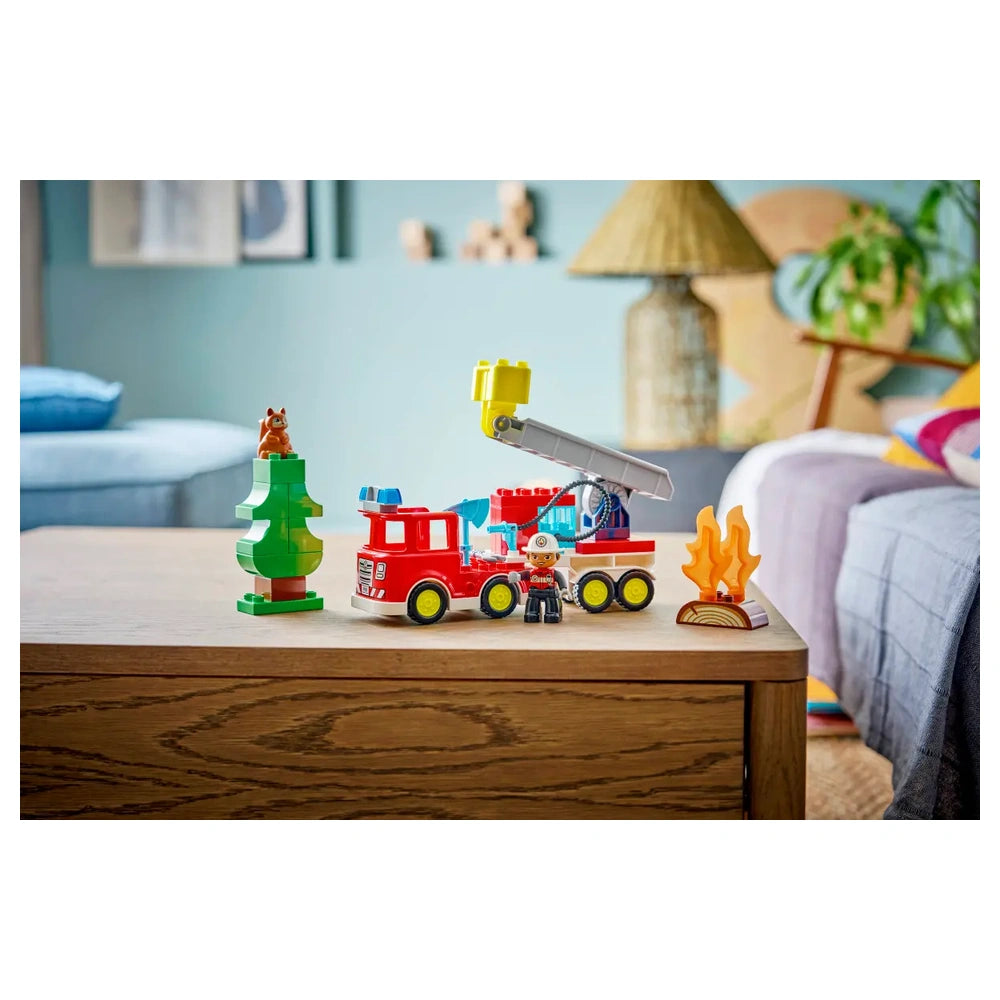 LEGO - Camión de Bomberos DUPLO con Manguera y Bombero - Juguetes de Construcción