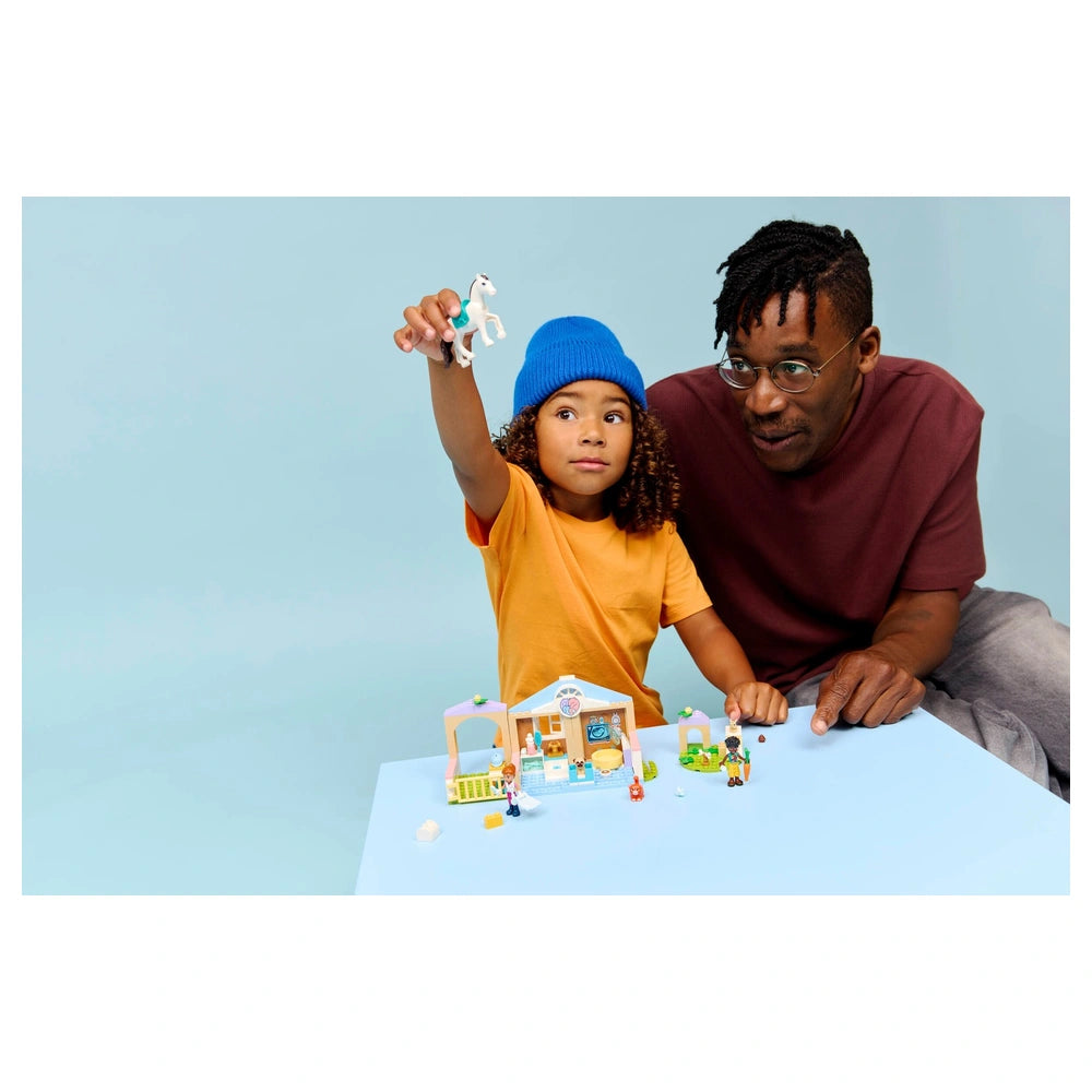 LEGO - Friends Clínica Veterinaria de Animales - Juguete de Construcción Presentamos la Clínica Veterinaria de Animales LEGO® Friends (42696), un encantador set de construcción diseñado para inspirar la creatividad y el juego imaginativo en niños de 4 años en adelante. Este atractivo juego permite a los niños construir sus propias historias mientras cuidan de una variedad de adorables animales. Con sus colores vibrantes y detalles intrincados, la Clínica Veterinaria de Animales es perfecta tanto para niñas como para niños que tienen una pasión por los animales y la narración de historias. La Clínica Veterinaria de Animales está equipada con todo lo que un joven veterinario necesita para crear sus propias aventuras de cuidado de mascotas. El set cuenta con un encantador establo para caballos, una sala de examen completamente equipada, cómodas camas para mascotas e incluso un parque para animales. Con estos elementos, los niños pueden representar diversos escenarios, desde tratar a un animal enfermo hasta jugar con mascotas en el parque. La inclusión de múltiples figuras de animales, que incluyen un caballo, un perro, un conejito y dos gatos, asegura que las posibilidades para el juego imaginativo sean infinitas. Además de las figuras de animales, el set incluye dos minimuñecas, Zac y Valeria, que actúan como los veterinarios en este mundo lúdico. Los niños pueden participar en escenarios de juego de roles donde asumen el papel de veterinario, utilizando accesorios realistas como una jeringa, un termómetro, una carpeta y un bolígrafo. Estos detalles no solo mejoran la experiencia de juego, sino que también animan a los niños a aprender sobre el cuidado y la responsabilidad de los animales de una manera divertida y atractiva. La Clínica Veterinaria de Animales LEGO® Friends (42696) está diseñada pensando en los preescolares, con piezas más grandes que facilitan el ensamblaje y lo hacen más accesible. El set contiene 141 piezas, lo que permite una experiencia de construcción manejable que fomenta la confianza y el desarrollo de habilidades. Además, la aplicación LEGO Builder ofrece una aventura de construcción interactiva, donde los niños pueden acercar, rotar modelos y seguir su progreso utilizando instrucciones en 3D. Este enfoque moderno para construir mejora la experiencia general y mantiene a los niños comprometidos. Este juego es un excelente regalo para cualquier niño que ame los animales y disfrute del juego imaginativo. Ya sea para un cumpleaños, una festividad o simplemente porque sí, la Clínica Veterinaria de Animales seguramente encantará a los jóvenes amantes de los animales. No solo proporciona horas de entretenimiento, sino que también fomenta la narración de historias y la creatividad, convirtiéndolo en una valiosa adición a la colección de juguetes de cualquier niño. No pierdas la oportunidad de inspirar la imaginación de tu hijo con la Clínica Veterinaria de Animales LEGO® Friends (42696). ¡Haz tu pedido ahora y observa cómo se embarcan en innumerables aventuras en el mundo del cuidado de animales! Con este set, las posibilidades son infinitas, y cada niño puede convertirse en un héroe en su propia historia de rescate animal.