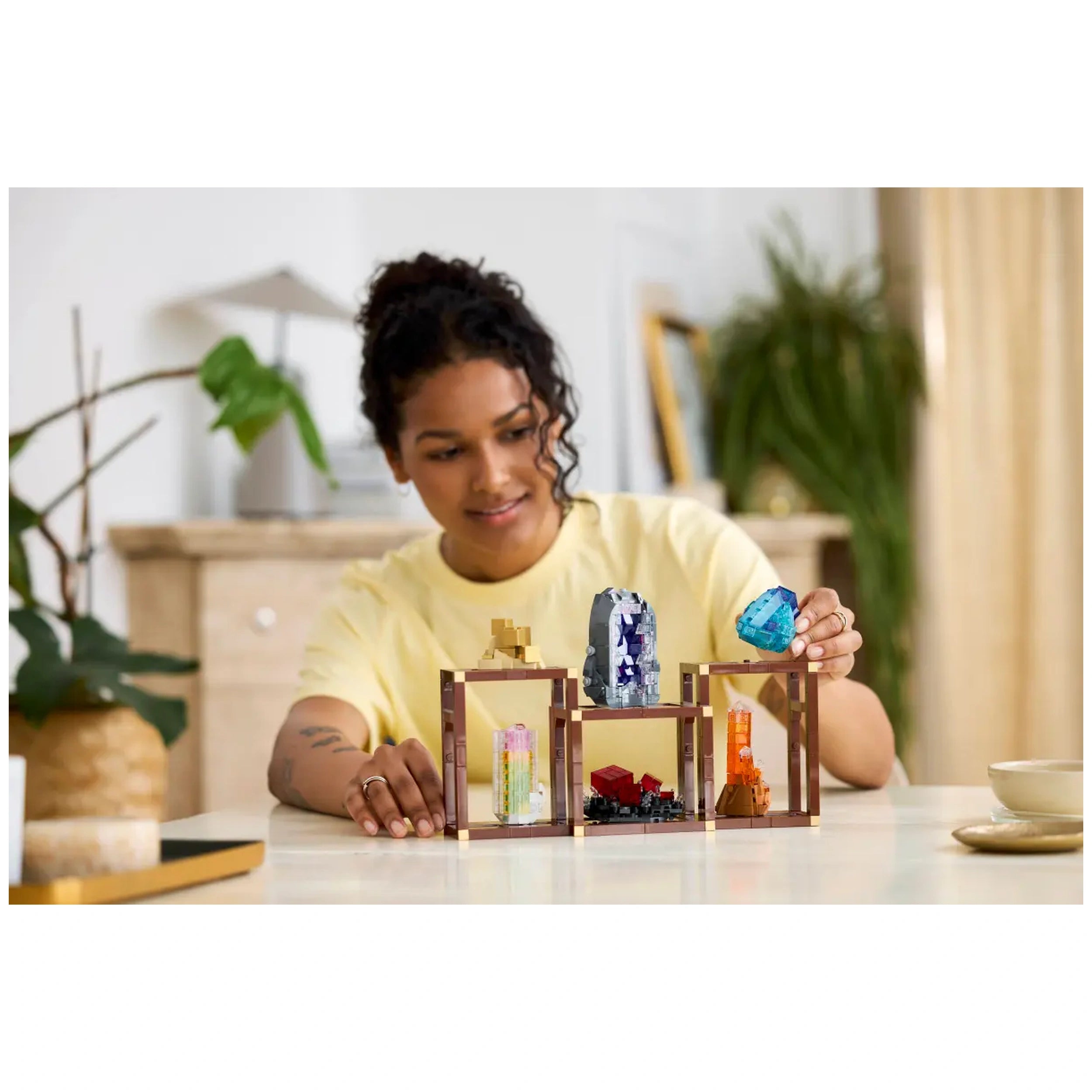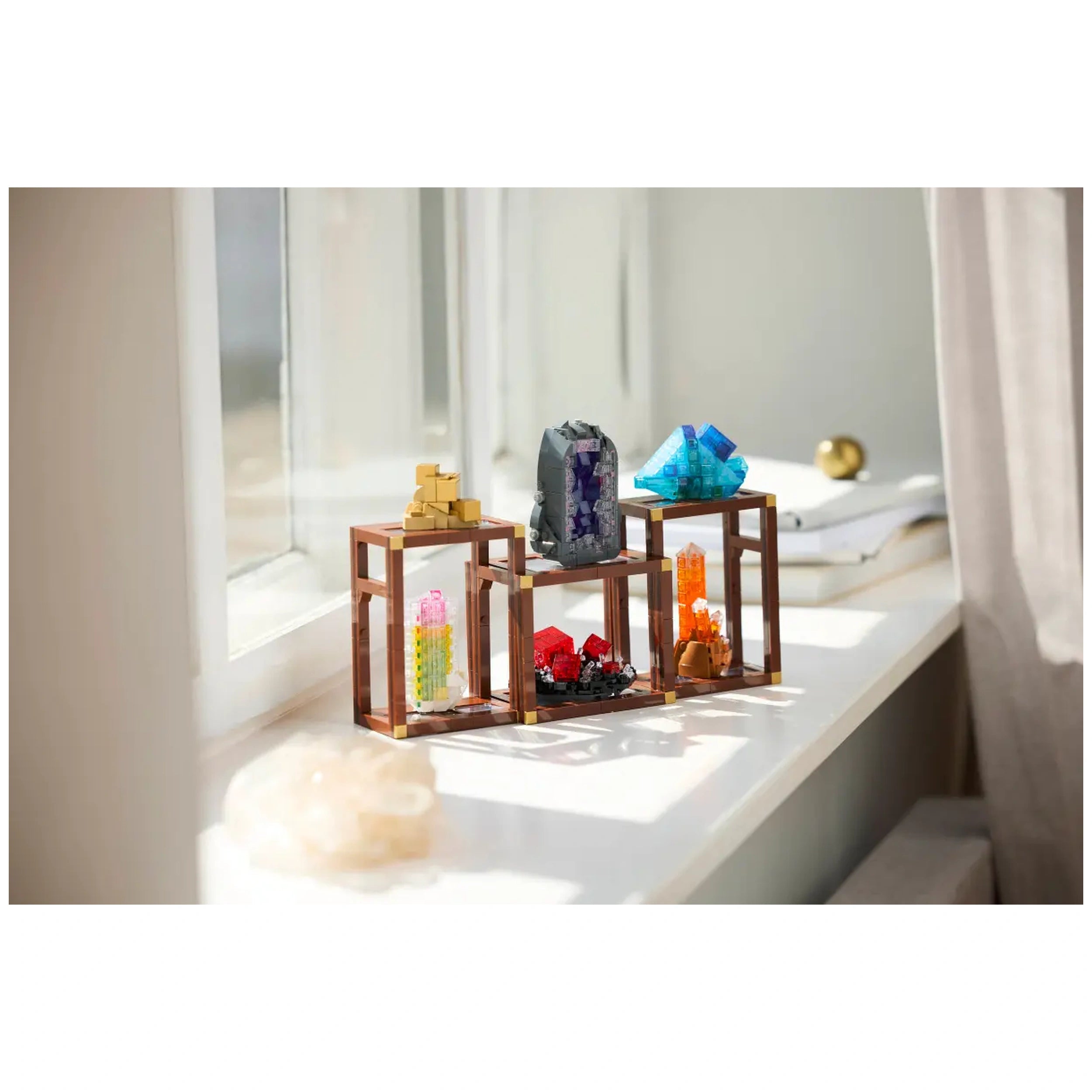 Customization is at the heart of the LEGO® Ideas Mineral Collection. You can choose to place the three buildable shelving units together for a cohesive look or separate them to create a more dynamic arrangement. Additionally, the ability to swap the minerals between shelves allows you to refresh your display whenever you desire. This versatility makes it a fantastic addition to any home decor, providing a unique conversation starter that reflects your passion for nature and art.