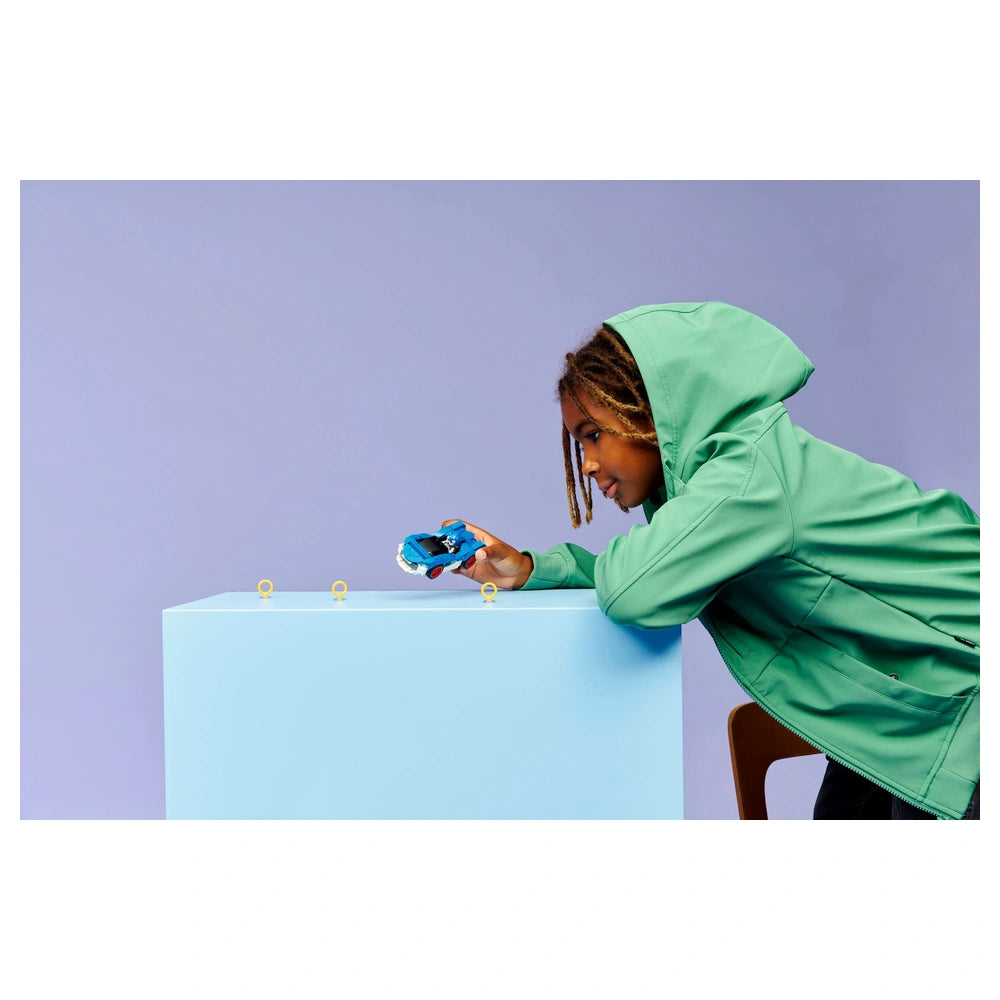 The Sonic: Speedster Lightning set features a vibrant blue-and-white race car, complete with wide, red-rimmed tires that are perfect for high-speed chases. Kids will love the interactive elements, including an opening hood that reveals a hidden Chaos Emerald gem, adding an extra layer of excitement to their racing adventures. The set encourages children to engage in storytelling as they navigate through imaginative scenarios, racing against friends or embarking on solo missions to collect the coveted Gold Rings.