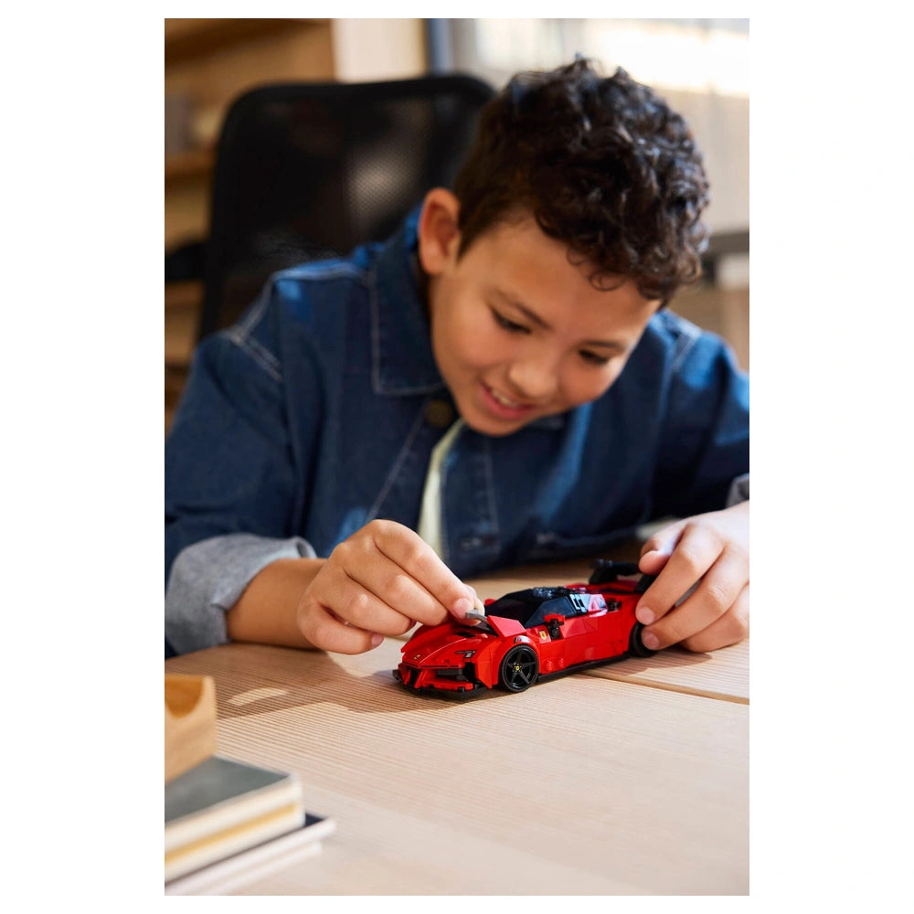 Once the building adventure is complete, the Ferrari SF90 XX Stradale makes for a striking addition to any teen's room decor. Whether displayed on a shelf, desk, or bedside table, this collectible LEGO race car is sure to impress friends and family alike. It serves as a testament to the builder's creativity and passion for automotive excellence.