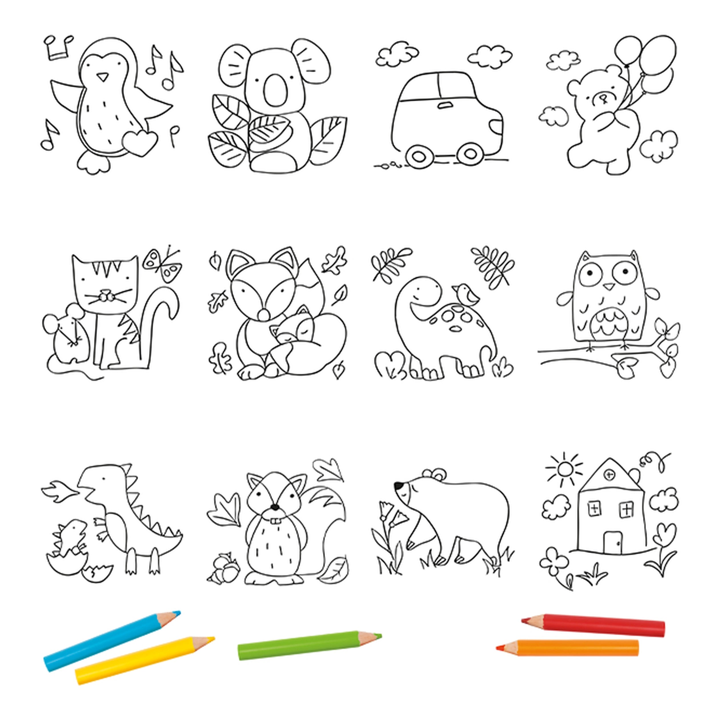 The standout feature of the Ludattica Crea Dudu Matitoni Baby is its specially printed drawings, which utilize a unique ink that outlines the boundaries for coloring. This innovative approach helps guide children to color within the lines, promoting independence and confidence in their artistic expression. As they engage with the vibrant designs, children will learn to control their hand movements, enhancing their dexterity and coordination in a fun and engaging way.