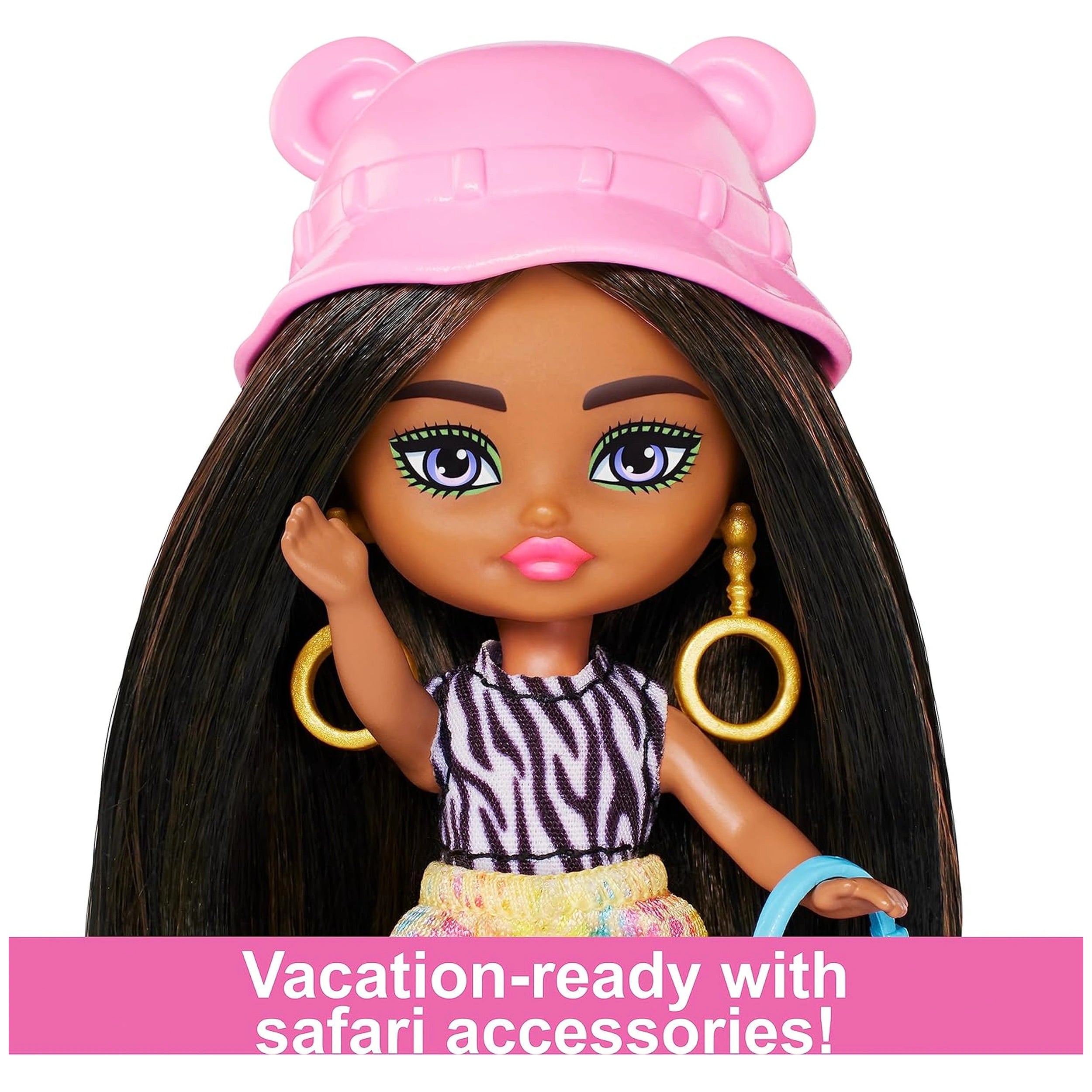 Introducing the MATTEL - Barbie Extra Fly Mini Minis - Assorted, a delightful addition to the world of miniature dolls that captures the essence of fun and fashion. Standing at just 3.25 inches tall, these charming dolls are the smallest members of the Barbie Extra Fly crew, designed to inspire creativity and imaginative play. Each doll comes dressed in trendsetting vacation-ready outfits, complete with destination-themed accessories that make them perfect companions for young adventurers.