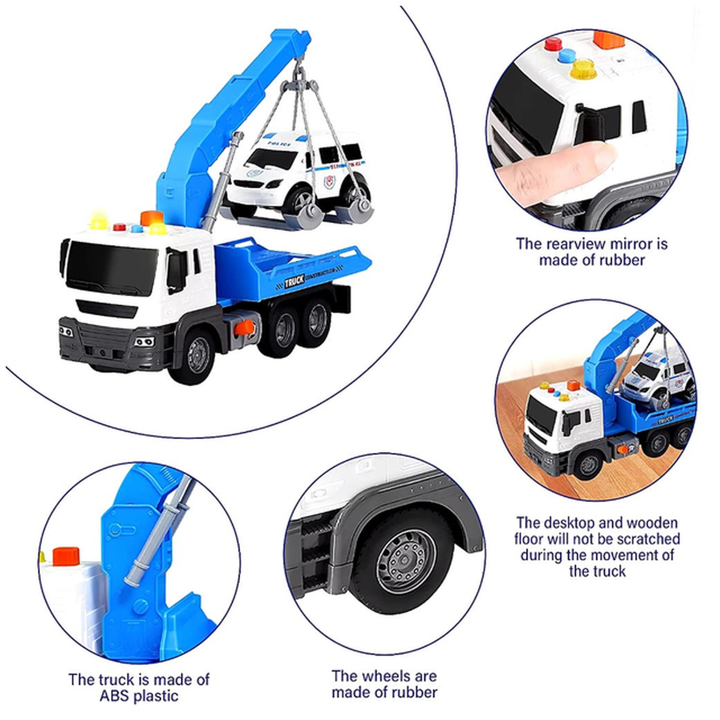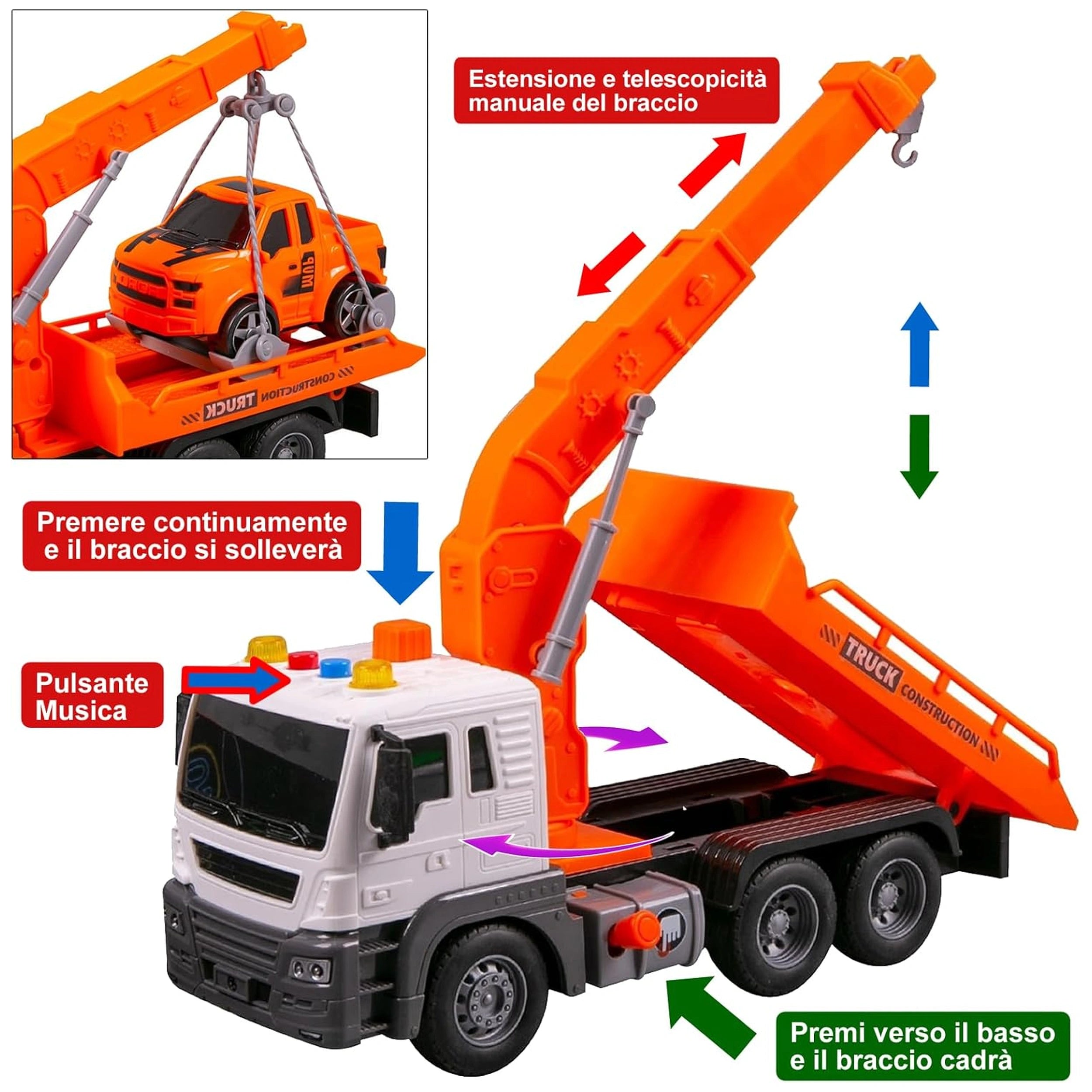 Metropoli - Aventura en la Ciudad Camión de Remolque - Vehículos de Juego Presentamos el Set de Camión de Remolque Aventura en la Ciudad de Metropoli, una emocionante adición a la colección de juguetes de cualquier niño que trae la emoción de las operaciones de rescate urbano directamente a su sala de juegos. Este gran camión de recuperación está diseñado para jóvenes aventureros que sueñan con comandar sus propias misiones de rescate en la ciudad. Con sus impresionantes características, que incluyen luces, sonidos y una grúa articulada, este camión de remolque no es solo un juguete; es una invitación al juego imaginativo y a la resolución de problemas. El Camión de Remolque Metropoli es parte de la dinámica serie "Metropoli", que enfatiza los detalles realistas y las funciones interactivas. Los niños pueden participar en sus propios escenarios de rescate con el robusto camión de remolque, que cuenta con un brazo de grúa y gancho operados manualmente. Esto les permite levantar y asegurar el coche de metal fundido incluido, simulando operaciones de rescate de la vida real y enseñándoles valiosas habilidades en gestión de cargas y recuperación. Una de las características destacadas de este juguete son sus elementos interactivos. El camión está equipado con luces y efectos de sonido que se pueden activar al presionar botones en el techo de la cabina. Estos sonidos realistas y luces intermitentes sumergen a los niños en sus misiones de rescate, añadiendo un elemento de urgencia y emoción a su tiempo de juego. La grúa, disponible en colores vibrantes, es completamente funcional, permitiendo una participación activa que mejora la experiencia de juego. La durabilidad es clave en los juguetes para niños, y el Camión de Remolque Metropoli no decepciona. Con una robusta configuración de 10 ruedas y una construcción resistente, este camión está diseñado para soportar las exigencias del tiempo de juego, ya sea en alfombra o en suelos duros. El diseño detallado de la cabina atrae a los entusiastas de los vehículos, convirtiéndolo en un regalo perfecto para cualquier niño fascinado por camiones y vehículos de emergencia. Para asegurar que este producto llegue a su público objetivo de manera efectiva, la estrategia de SEO se centra en palabras clave de alto valor como "juguete camión de remolque", "camión de recuperación" y "vehículo con luces y sonidos". Al incorporar palabras clave funcionales como "grúa articulada" y "gancho móvil", esta descripción está optimizada para motores de búsqueda, facilitando que padres y cuidadores encuentren el juguete perfecto para sus hijos. En conclusión, el Set de Camión de Remolque Aventura en la Ciudad de Metropoli es más que un juguete; es una puerta de entrada al juego creativo y al aprendizaje. Equipa a tu hijo con este vehículo de rescate definitivo y observa cómo emprende innumerables aventuras en su propia ciudad. No pierdas la oportunidad de inspirar el juego imaginativo: ¡asegura tu Camión de Remolque Metropoli hoy!