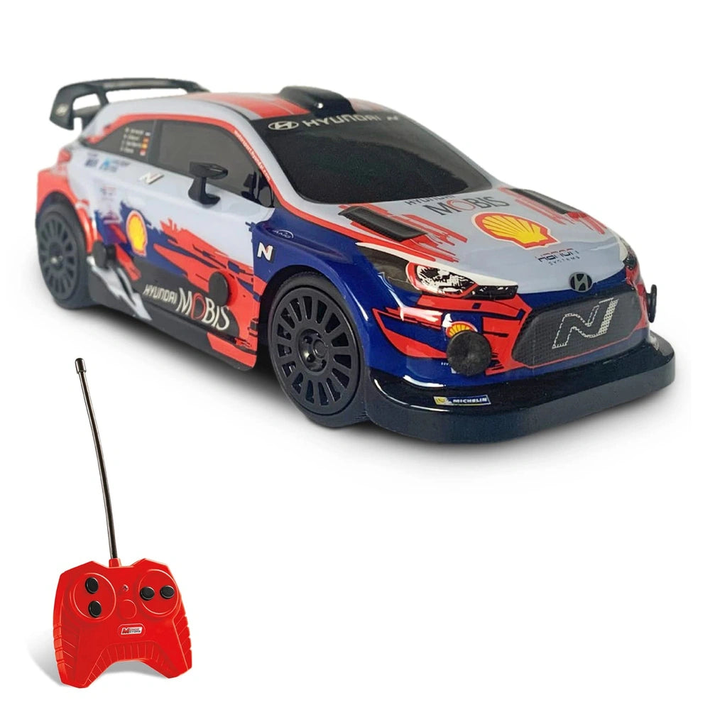 Introducing the Mondo Hyundai I20 WRC Radio-Controlled 2.4 GHz 1:28 Full Function with Lexan Body, a thrilling toy designed for young racing enthusiasts. This meticulously crafted miniature model brings the excitement of World Rally Championship racing right into your living room. With its stunning attention to detail and high-performance features, this radio-controlled car is perfect for children who dream of speed and adventure.