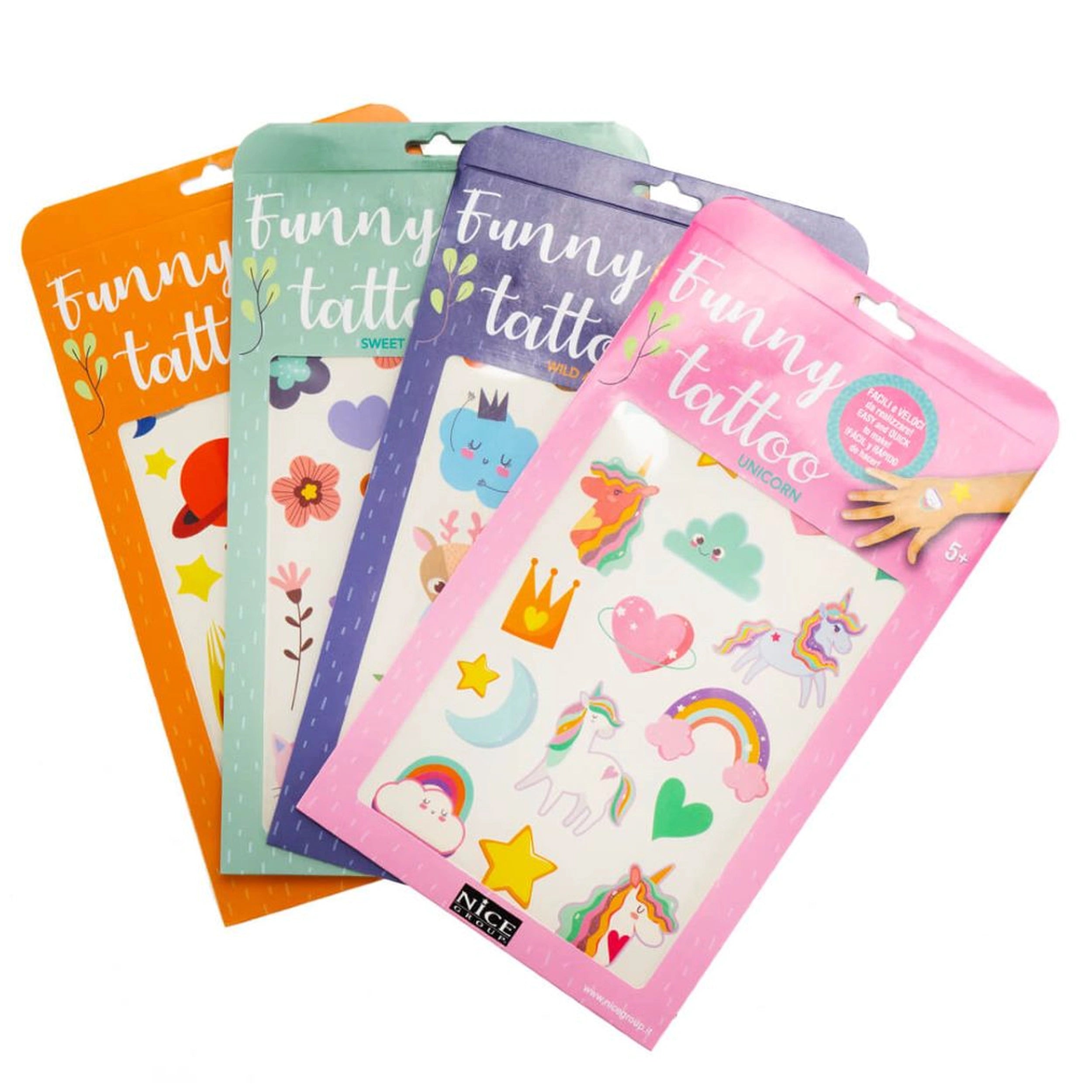 Introducing the Nice - Funny Tattoo Pack, a delightful collection of colorful temporary tattoos designed to spark joy and creativity in children and adults alike. This charming set is available in four whimsical themes: unicorns, wild animals, adorable puppies, and outer space. Each theme offers a unique opportunity for self-expression, making these tattoos perfect for parties, playdates, or simply adding a touch of fun to everyday life.