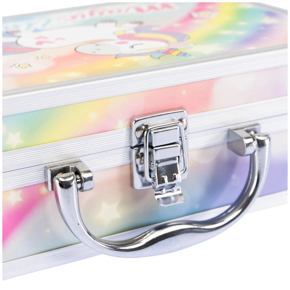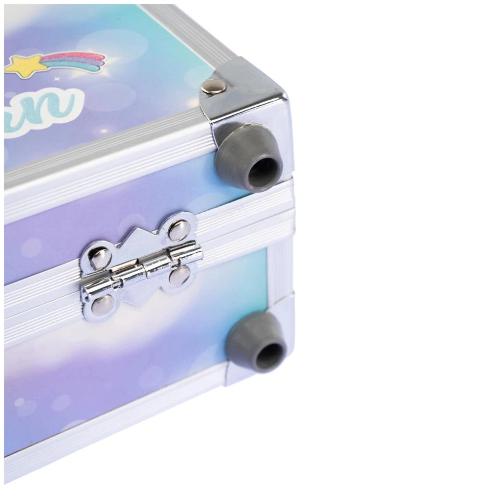 Crafted with durability in mind, the Nice - Magic Unicorn Makeup Case features a sturdy handle for easy transport, ensuring that your little one can take their makeup station wherever they go. The secure snap closure keeps all contents safe and sound, while reinforced corners and feet provide added stability and protection. This case is designed to withstand the rigors of play, making it an ideal companion for aspiring makeup artists.
