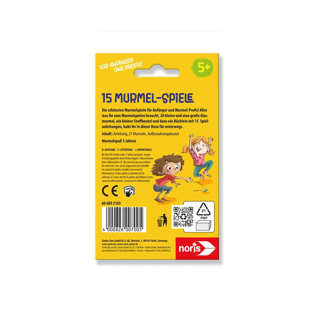 Noris presents a versatile collection of marble games designed for children aged 5 and up, within the category of outdoor play equipment. This set combines timeless fun with skill-building opportunities, making it an ideal choice for both playdates and solo activities.