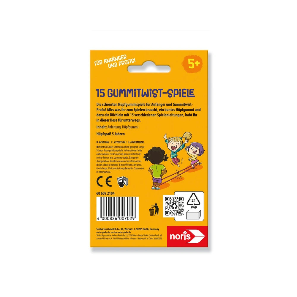 Noris presents a dynamic set of 15 Rubber Twist Games designed for children aged 5 and up, within the category of outdoor play equipment. This engaging product encourages active play and physical fitness, making it a perfect choice for energetic young explorers.
