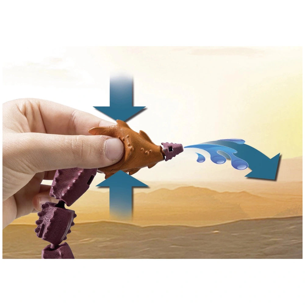 One of the standout features of this playset is the giant scorpion itself. With movable arms and an opening lower claw, it provides endless possibilities for interactive play. The scorpion's poisonous stinger can be filled with water, allowing for a fun and engaging water-splashing effect when it strikes. This unique feature not only enhances the play experience but also encourages children to think creatively about how they can use the scorpion in their adventures.
