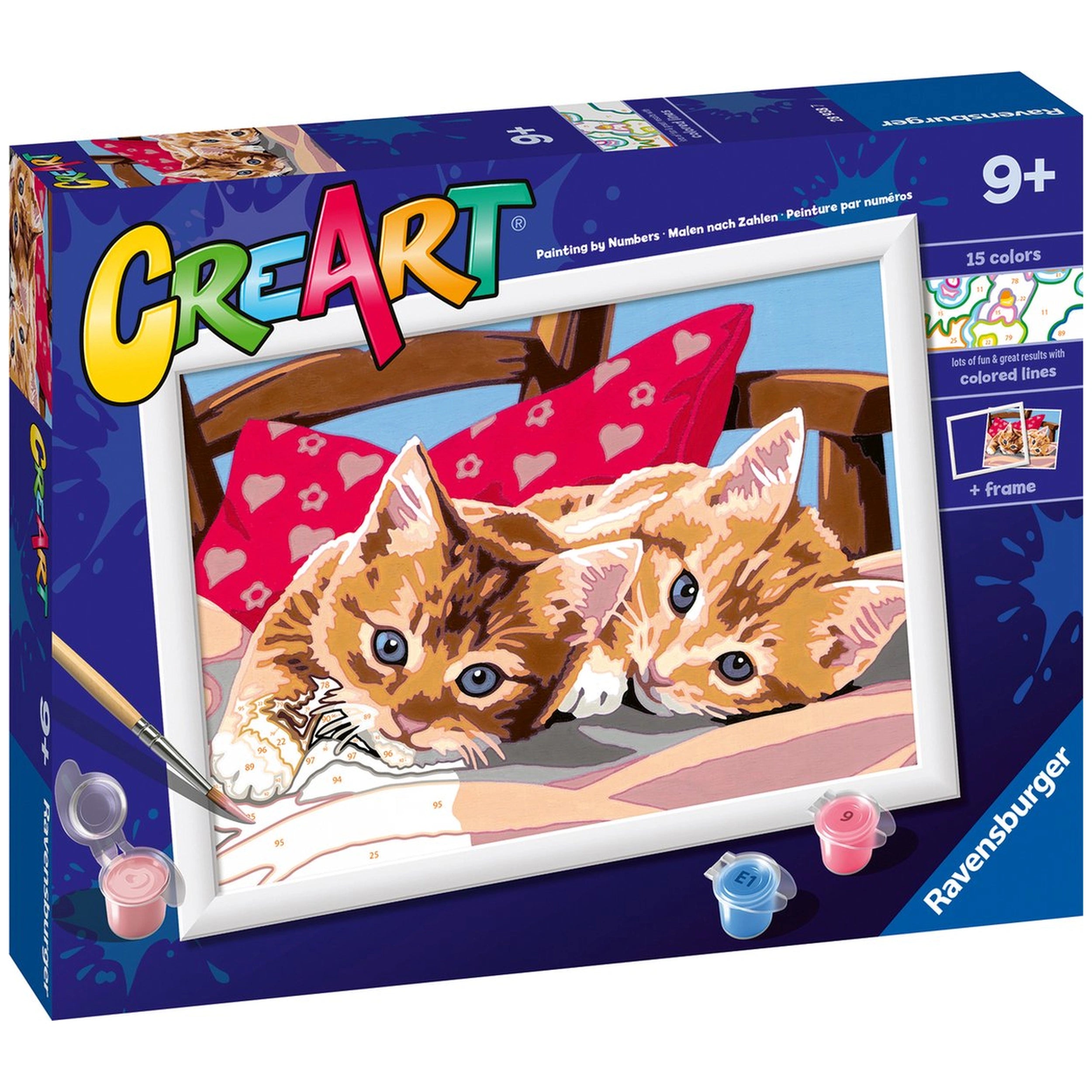Don't miss out on the opportunity to explore your artistic side with the Ravensburger CreArt Two Cuddly Cats Painting By Numbers set. Order yours today and experience the joy of painting while creating a beautiful piece of art that you can cherish for years to come. Embrace your creativity and let the Two Cuddly Cats inspire you to paint your own masterpiece!