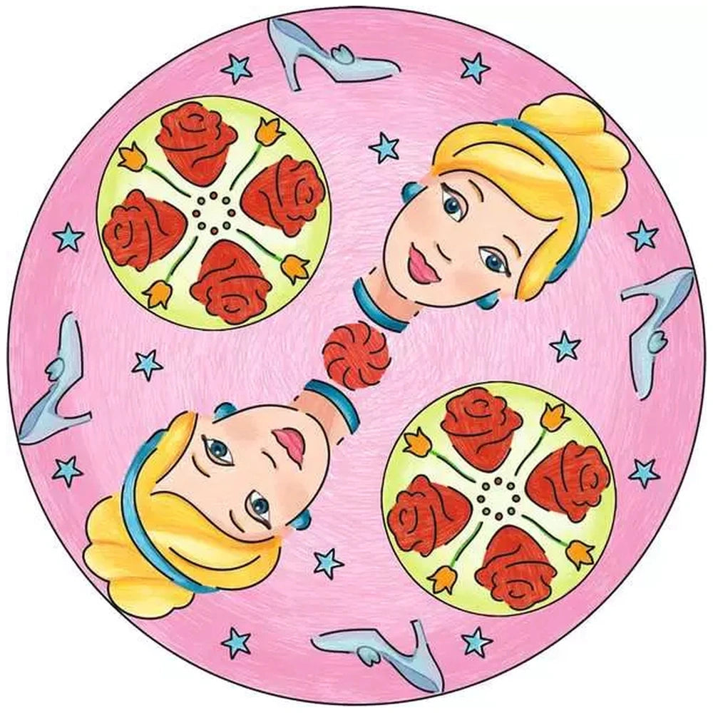 Included in the set are essential tools for creating stunning mandalas: a sturdy frame for holding the paper, two stencils (one large and one small), a felt-tip pen, three colored pencils, and several blank sheets. The thoughtful design ensures that children have everything they need to start their artistic journey right away. The enchanting Disney princesses, such as Cinderella and Belle, serve as inspiration, making the process even more engaging for young fans.