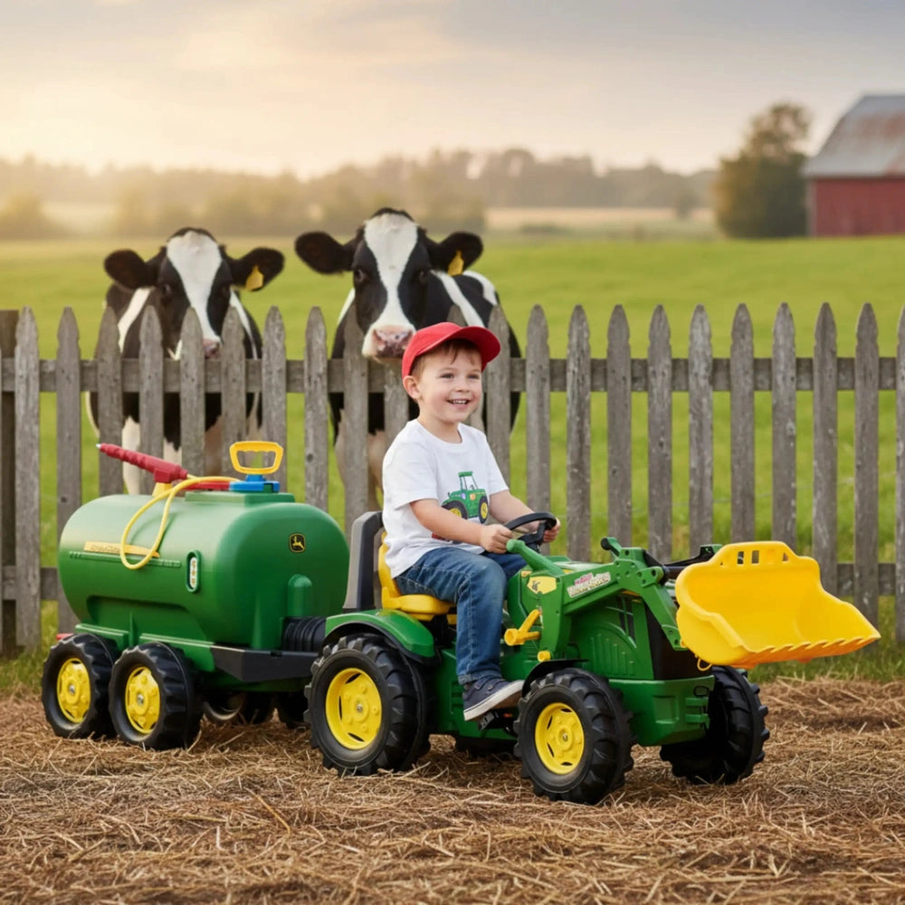Rolly Toys - RollyX-Trac Premium John Deere 8400R Excavadora Juguete de Montar Presentamos el Rolly Toys - RollyX-Trac Premium John Deere 8400R Excavadora Juguete de Montar, el vehículo de juego definitivo diseñado para niños de 3 a 10 años. Este excepcional juguete combina una calidad artesanal con un juego imaginativo, permitiendo a los jóvenes aventureros explorar su entorno mientras desarrollan habilidades motoras esenciales. Con su diseño llamativo y numerosas características, el RollyX-Trac Premium John Deere 8400R es más que un juguete; es una puerta a la aventura y la creatividad. El RollyX-Trac Premium John Deere 8400R está equipado con una variedad de características que mejoran la experiencia de juego. Uno de sus componentes destacados es el rollyTrac Loader Premium, que se puede acoplar y desacoplar fácilmente, ofreciendo a los niños la oportunidad de participar en diversos escenarios imaginativos. Esta característica fomenta el juego de roles y ayuda a los niños a entender la mecánica de las máquinas de una manera divertida e interactiva. El vehículo también cuenta con guardabarros frontales integrados y un robusto arco de seguridad, garantizando la seguridad mientras los niños se embarcan en sus aventuras. La comodidad es primordial en el diseño del RollyX-Trac Premium John Deere 8400R. El asiento ajustable se puede modificar tanto en longitud como en altura, adaptándose a niños de diferentes edades y tamaños. Este diseño reflexivo asegura que cada niño pueda disfrutar de un paseo cómodo, ya sea recorriendo el patio trasero o navegando por un área de juegos. Además, el capó del vehículo se abre para revelar un compartimento de almacenamiento, perfecto para guardar pequeños tesoros o juguetes, mejorando aún más la experiencia de juego imaginativo. La seguridad y la durabilidad son consideraciones clave en la construcción de este juguete de montar. El RollyX-Trac Premium John Deere 8400R cuenta con neumáticos silenciosos que permiten paseos suaves y silenciosos, asegurando que el tiempo de juego no perturbe la paz del vecindario. La tensión de cadena ajustable y la cadena protegida contribuyen a la longevidad del vehículo, convirtiéndolo en un compañero confiable para años de juego. Además, el radio de giro optimizado, logrado a través de la dirección pivotante del eje, mejora la maniobrabilidad, permitiendo a los niños navegar por esquinas estrechas con facilidad. La personalización es otro aspecto emocionante del RollyX-Trac Premium John Deere 8400R. Con acoplamientos tanto frontales como traseros, así como una robusta barra de dirección, los jóvenes conductores pueden acoplar varios accesorios y complementos, adaptando su vehículo a sus aventuras imaginativas. Esta característica no solo promueve la creatividad, sino que también fomenta habilidades de resolución de problemas a medida que los niños descubren cómo utilizar mejor sus accesorios para diferentes escenarios. La capacidad de adaptar el vehículo con accesorios funcionales asegura que la experiencia de juego se mantenga fresca y atractiva con el tiempo. En conclusión, el Rolly Toys - RollyX-Trac Premium John Deere 8400R Excavadora Juguete de Montar es una inversión excepcional en el tiempo de juego de su hijo. Combina seguridad, comodidad y oportunidades infinitas para el juego imaginativo, convirtiéndolo en un artículo imprescindible para cualquier joven aventurero. No pierda la oportunidad de proporcionar a su hijo un juguete que fomente la creatividad, las habilidades motoras y horas de diversión. ¡Ordene el RollyX-Trac Premium John Deere 8400R hoy y observe cómo su hijo se embarca en innumerables aventuras llenas de alegría y emoción!