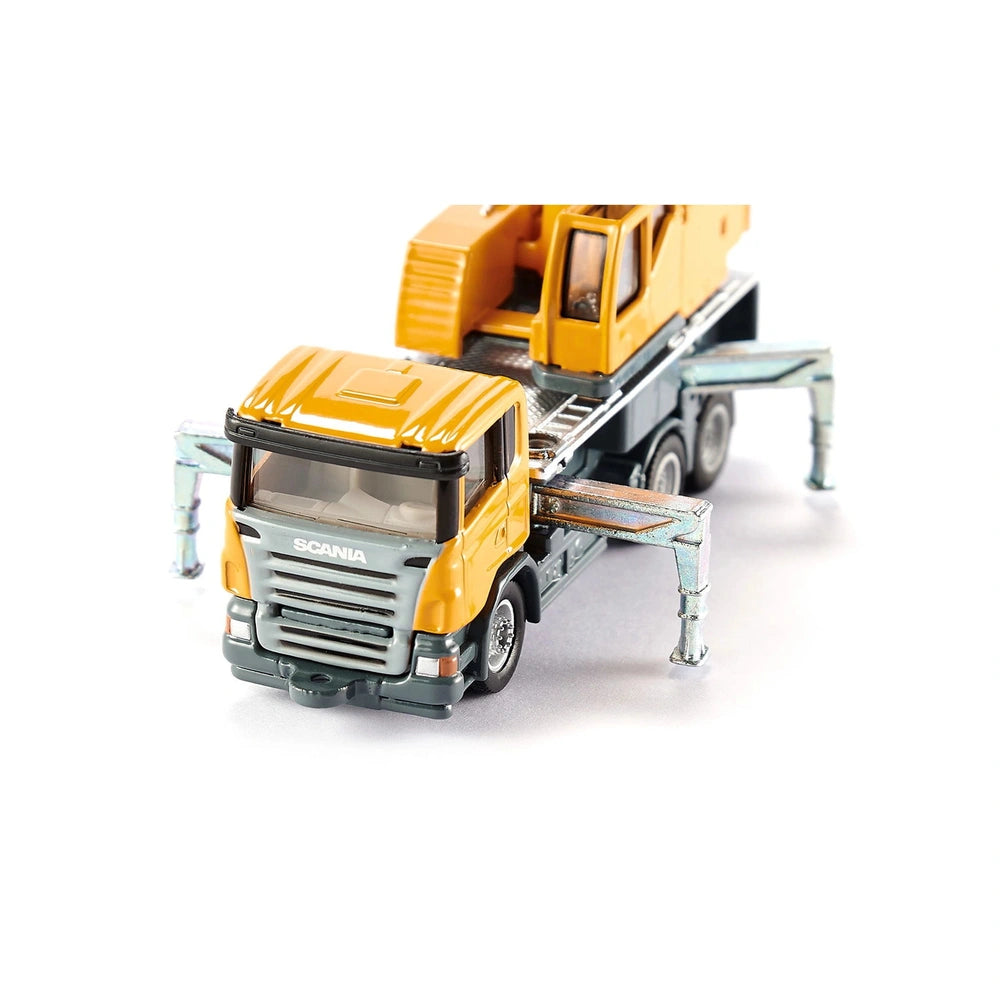 The Siku Liebherr Telescopic Crane Truck boasts a 3-axle chassis that provides stability and maneuverability, making it ideal for navigating various terrains. The Scania driver's cabin is meticulously designed, showcasing the attention to detail that Siku is known for. The die-cast metal construction of both the cabin and the rotating crane body ensures longevity, allowing this model to withstand the rigors of play while maintaining its aesthetic appeal.