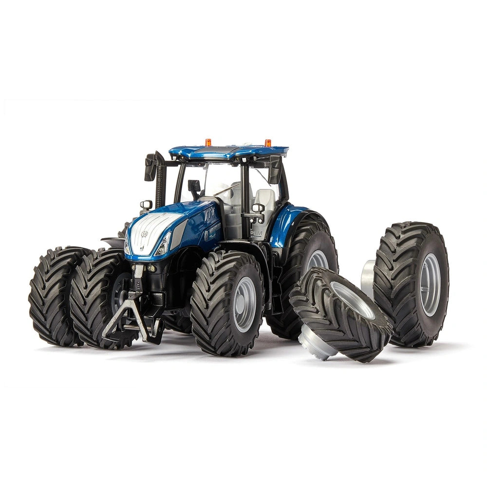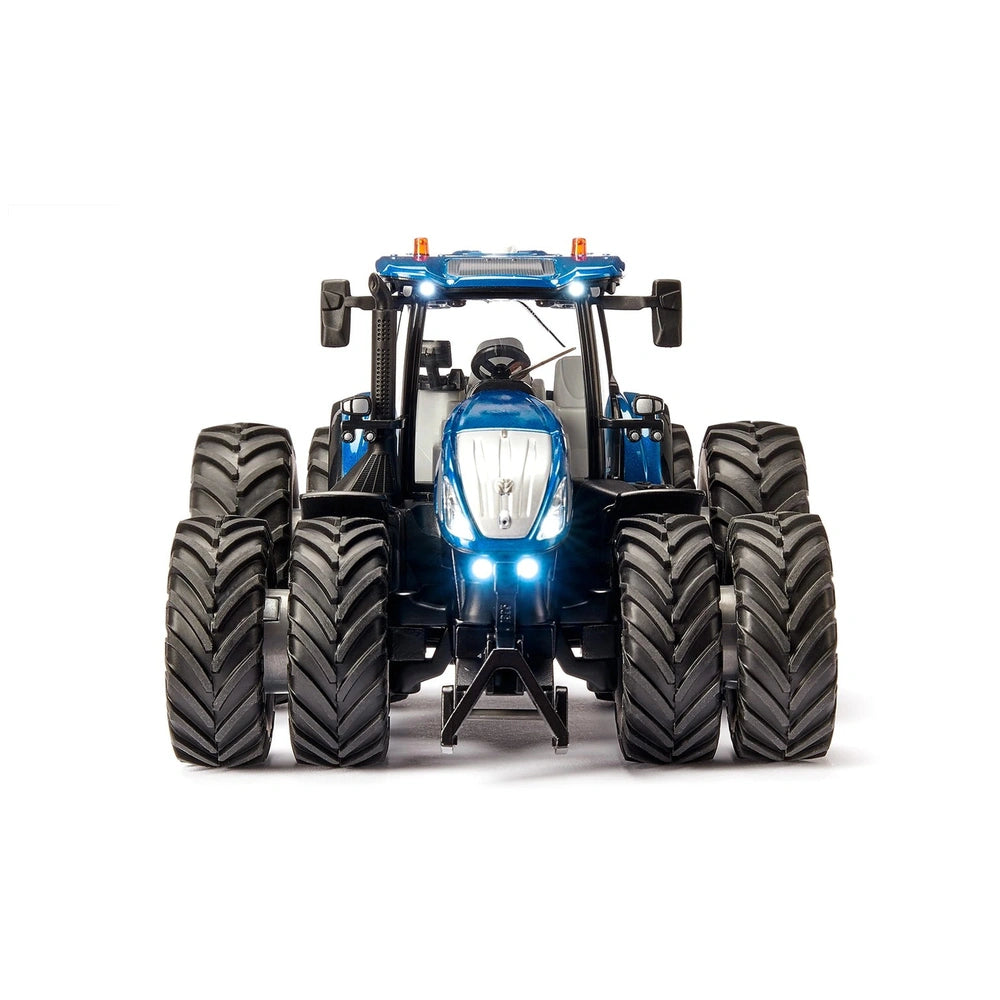 Introducing the Siku - New Holland T7.315 on duals with Bluetooth app control, a remarkable play vehicle that embodies the essence of modern agricultural machinery. This premium tractor is designed to meet the demanding needs of contemporary farming operations, offering exceptional versatility and strength. With a powerful engine capable of delivering up to 315 HP, the T7.315 is engineered to handle the heaviest working equipment, making it an indispensable tool for tasks such as traction, soil cultivation, baling, and transport.