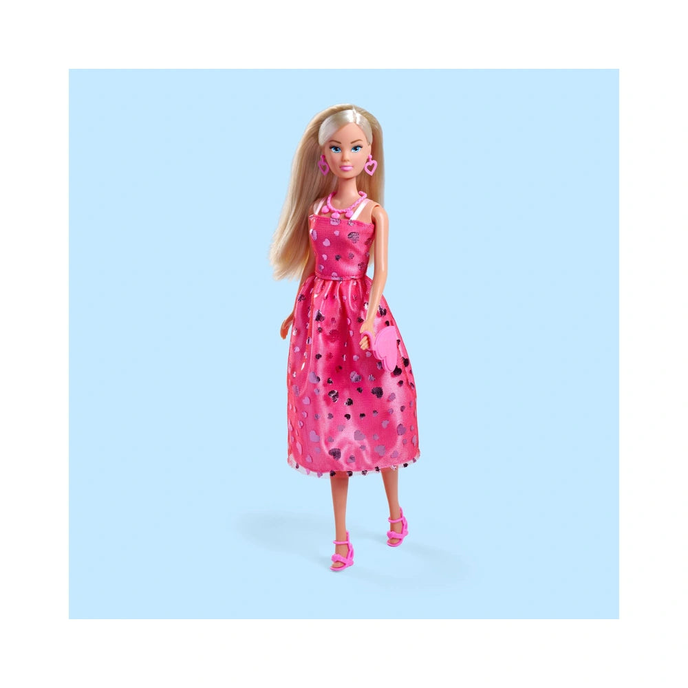 La muñeca Steffi Love Pink Love presenta un impresionante vestido rosa adornado con corazones brillantes, lo que la convierte en una compañera ideal para un juego a la moda. El diseño elegante incluye un corsé ajustado y una falda fluida que realza el movimiento de la muñeca, permitiendo contar historias dinámicas. Acompañada de una colección de accesorios, esta muñeca fomenta la creatividad y el juego de roles, permitiendo a los niños explorar su sentido de la moda mientras desarrollan sus habilidades narrativas.
