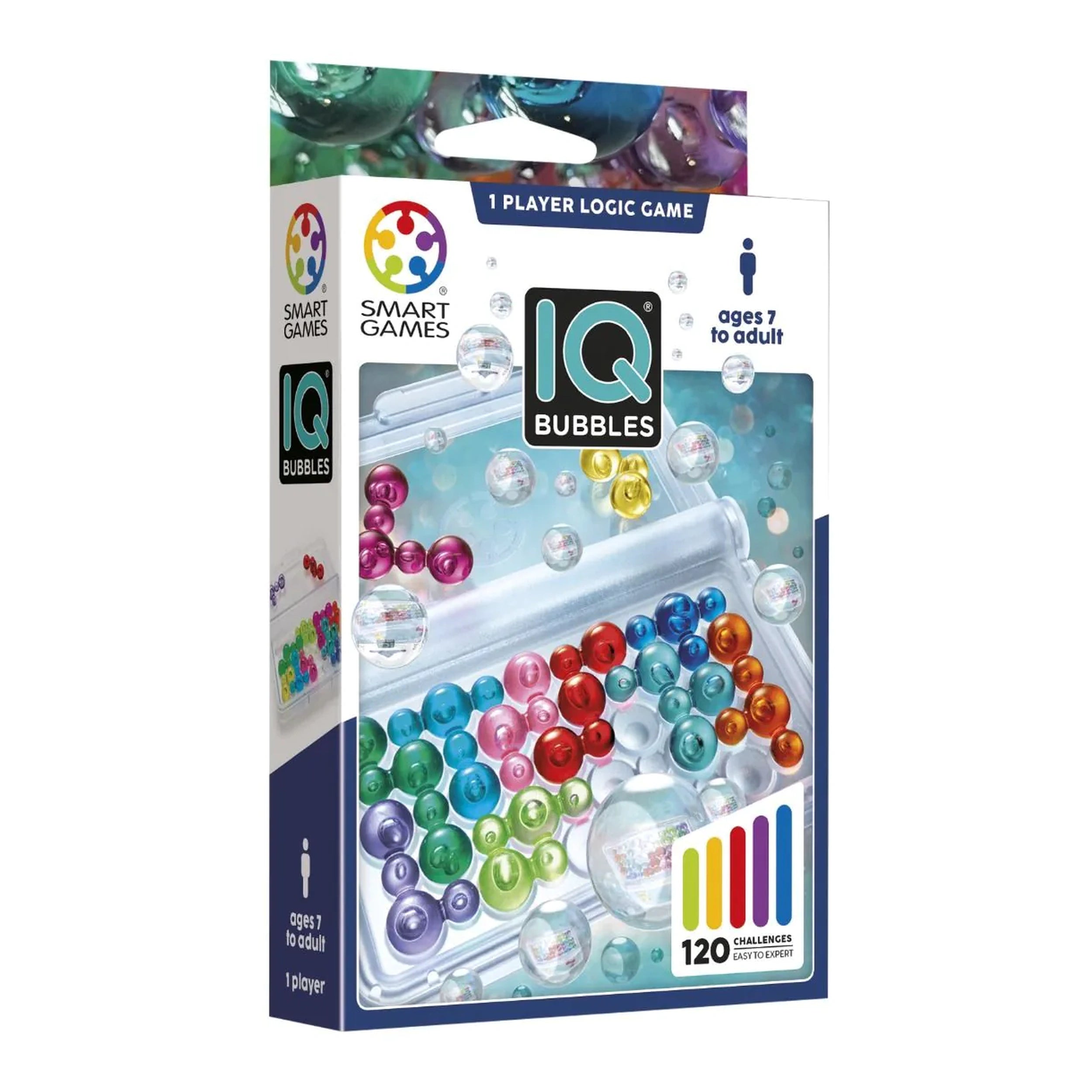 The game features a unique set of 11 translucent bubble pieces that players must fit onto a travel-friendly gameboard. With 120 challenges ranging from Starter to Wizard levels, IQ Bubbles offers a progressive difficulty curve that keeps players engaged and motivated. Each challenge is designed to test your brainpower, making it an excellent tool for both children and adults looking to improve their mental agility while having fun.