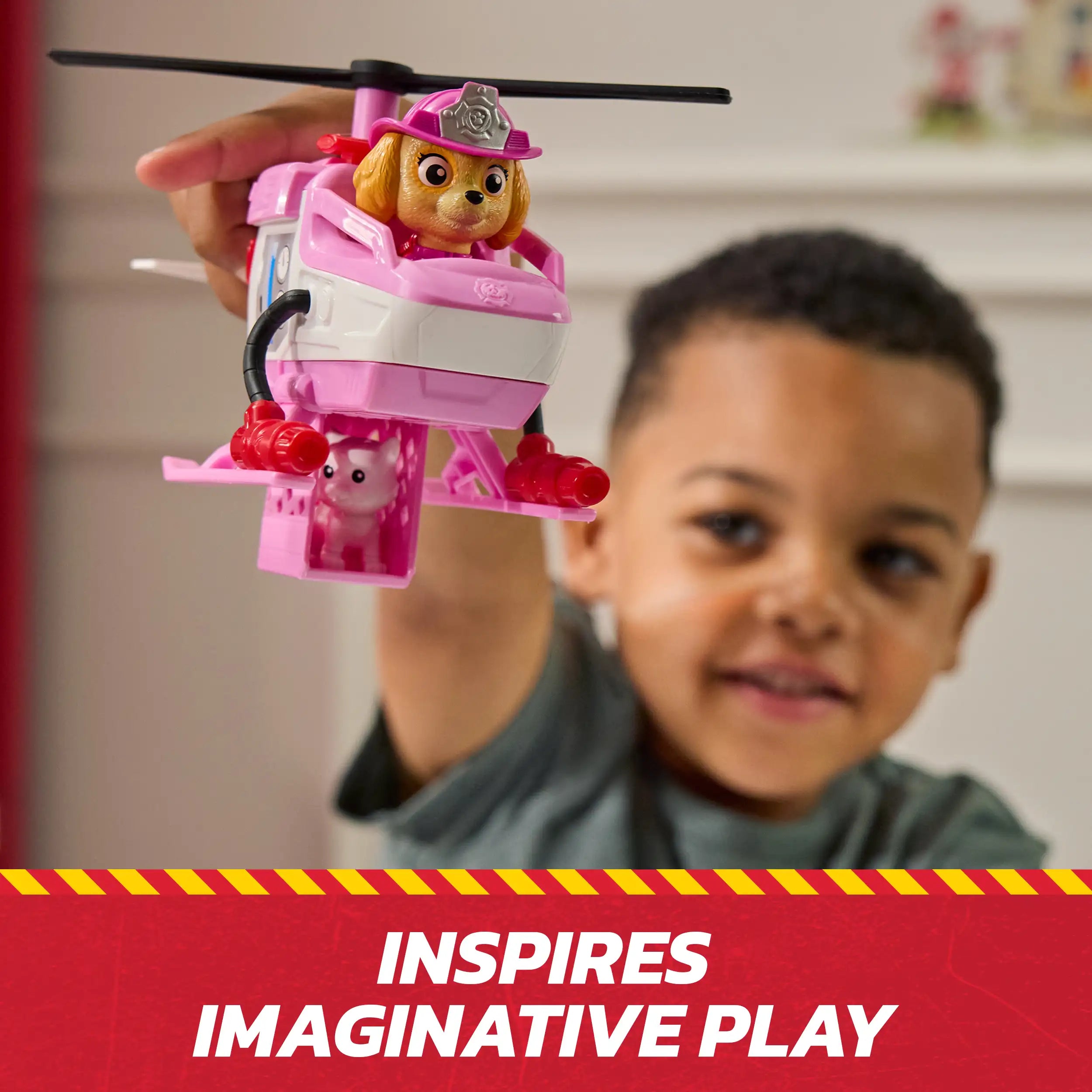 The centerpiece of this set is the impressive Rescue Fire Chopper. Measuring over seven inches long and four inches tall, this vehicle has a substantial and satisfying presence. It is robustly constructed to handle countless emergency landings and take-offs. The helicopter features genuine PAW Patrol styling, from its official decals to Skye's signature pink detailing, making it an unmistakable and prized addition to any child's collection. For an added touch of realism, the chopper's main propeller is fully rotatable, allowing kids to spin it by hand as they "fly" the aircraft through the room to the scene of the emergency.