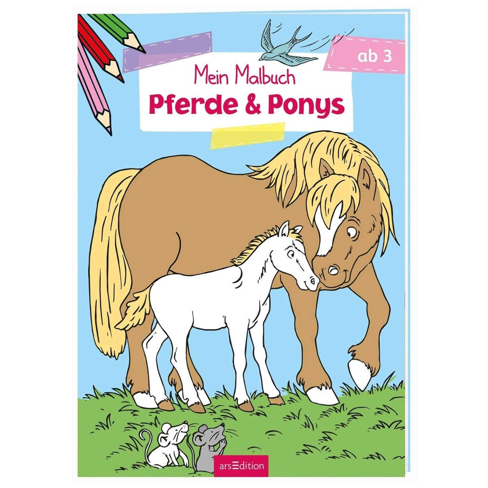 Introducing the ARSEDITION - Mein Malbuch ab 3 Jahren - Pferde & Ponys, a delightful coloring book designed specifically for young horse enthusiasts. This engaging German edition invites children to immerse themselves in the enchanting world of horses, ponies, and foals. With its captivating illustrations, this coloring book is perfect for sparking creativity and imagination in children aged three and above.
