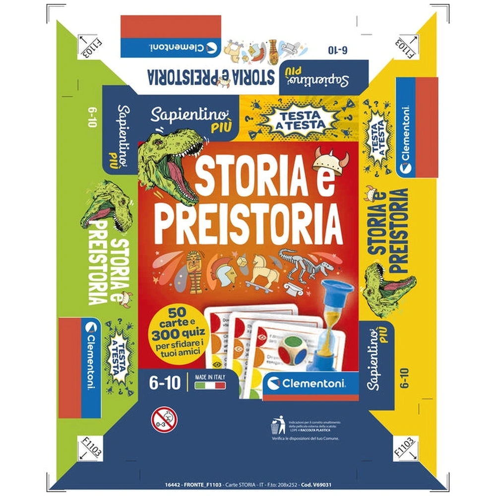 Introducing the Clementoni - Testa A Testa Card Games Storia E Preistoria, an engaging and educational card game designed to challenge friends and family in a thrilling race against time. This Italian edition is perfect for young learners aged 6 to 10, providing a fun way to explore the fascinating worlds of history and prehistory. With its vibrant design and interactive gameplay, this card game is an excellent addition to any family game night or educational setting.