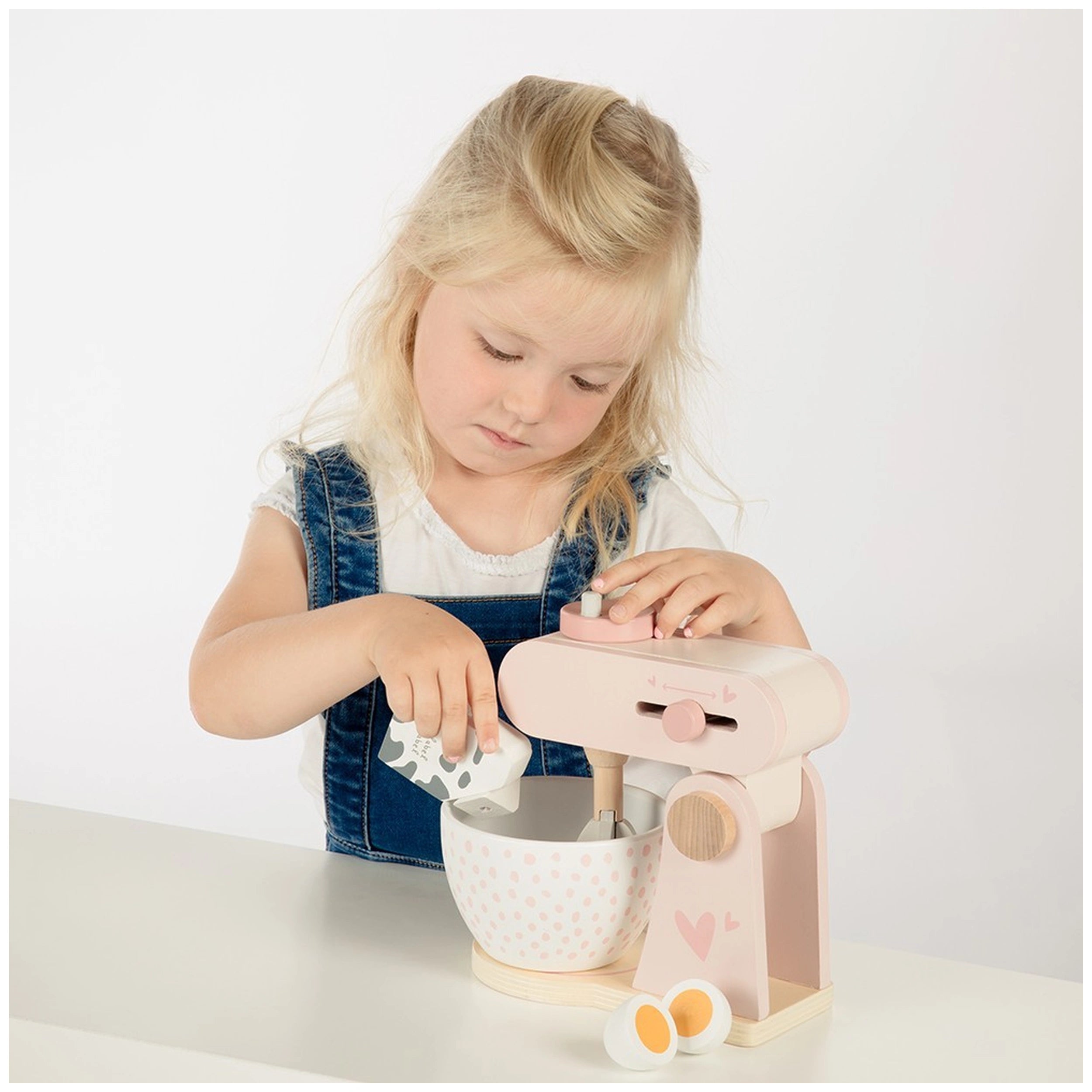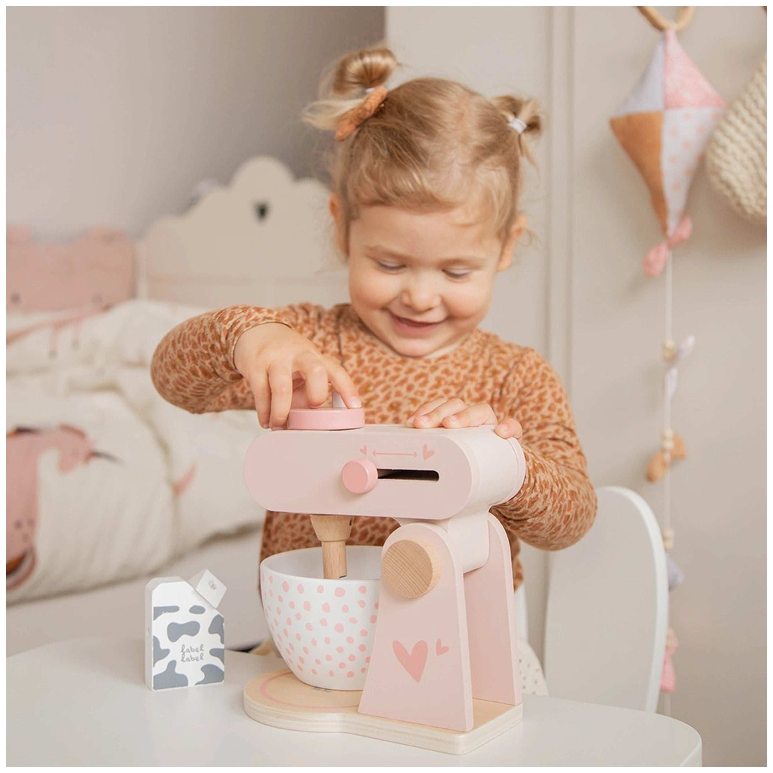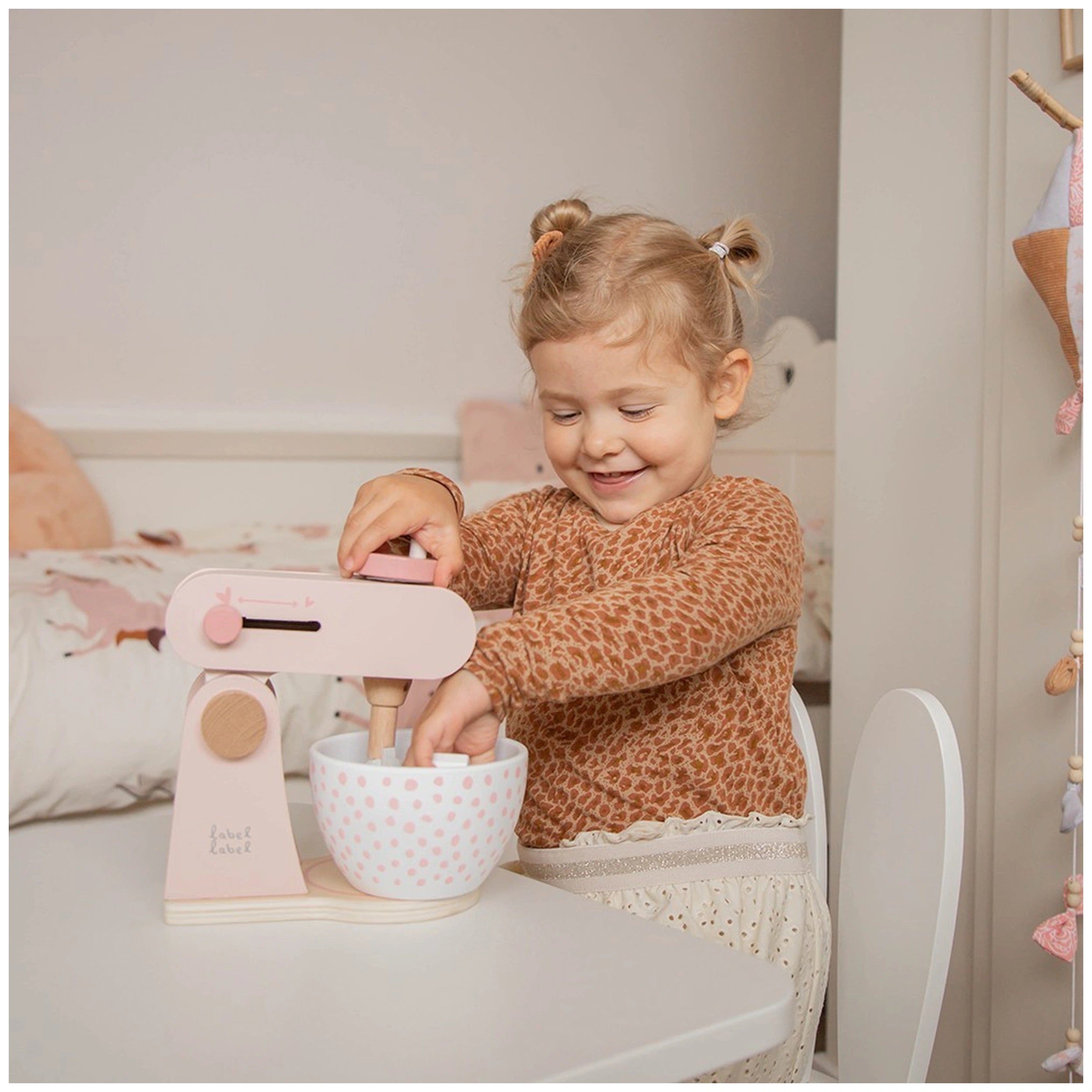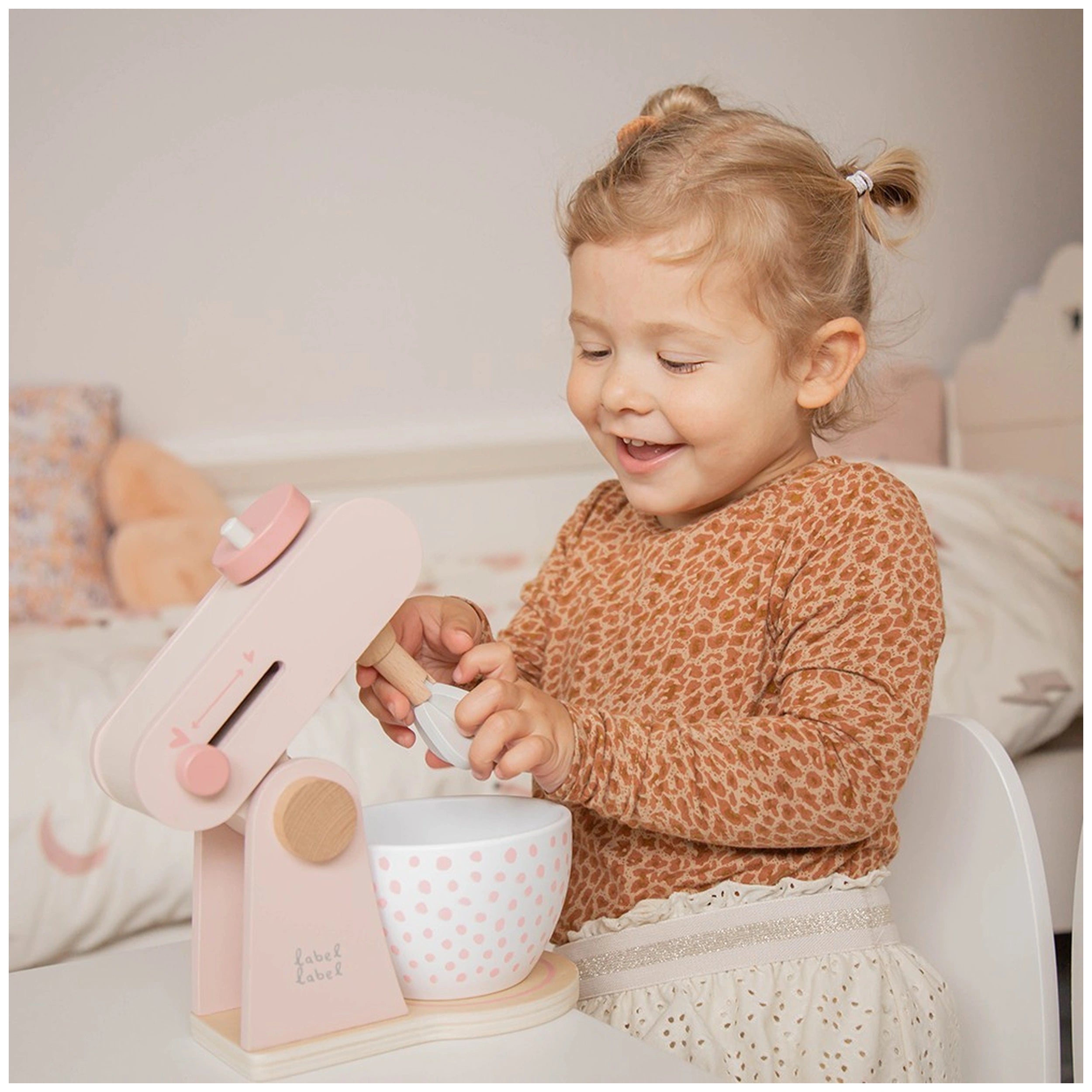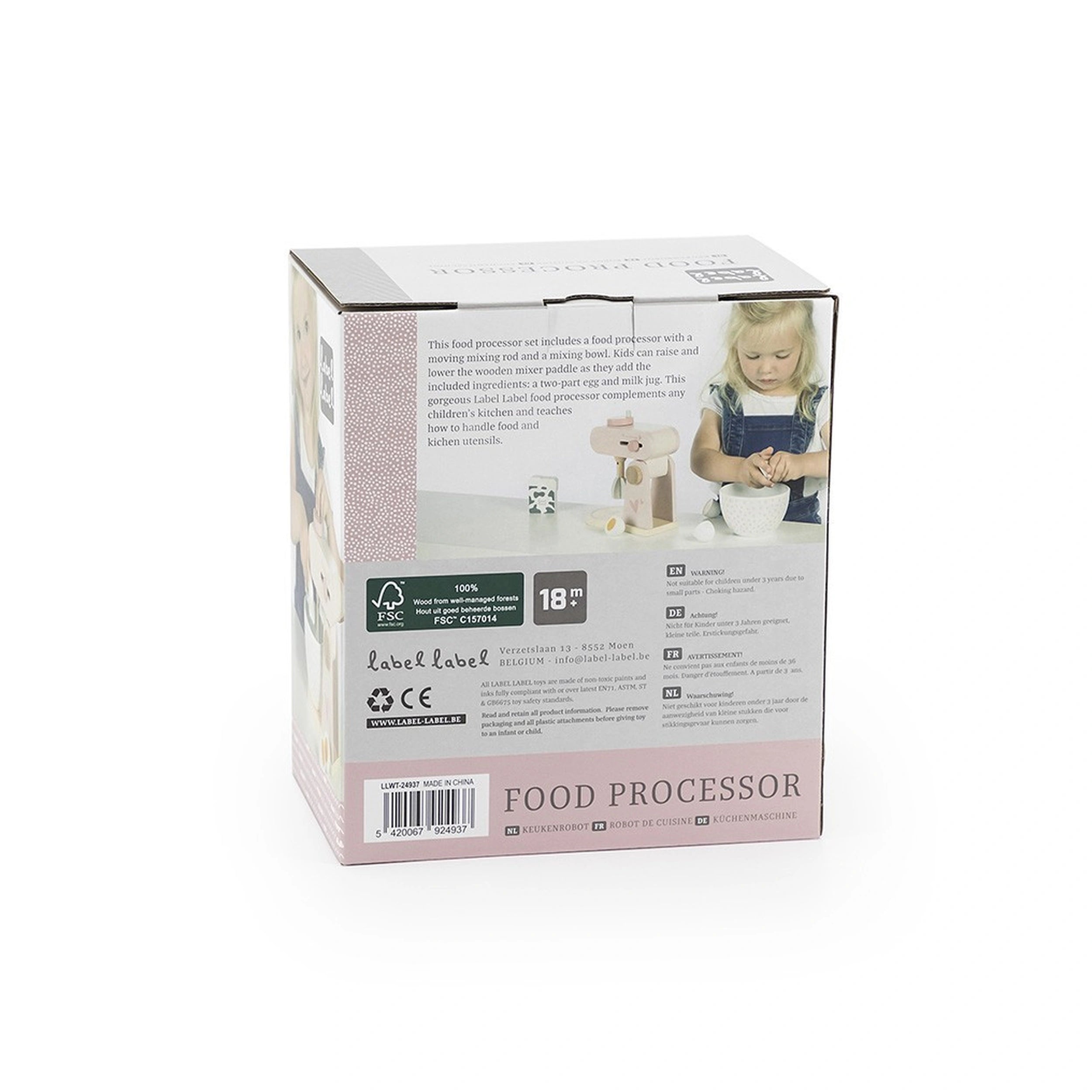 Introducing the Label-Label Food Processor in Pink, a delightful addition to your child's playtime that encourages creativity and imaginative role-playing. This charming kitchen robot is designed specifically for little chefs who aspire to whip up their own delicious treats, from cookies to cakes. Crafted from high-quality FSC certified wood, this food processor not only meets safety standards but also promotes sustainable play. The vibrant colors and symbols are applied using child-friendly water-based paint, ensuring a safe and engaging experience for your little ones.