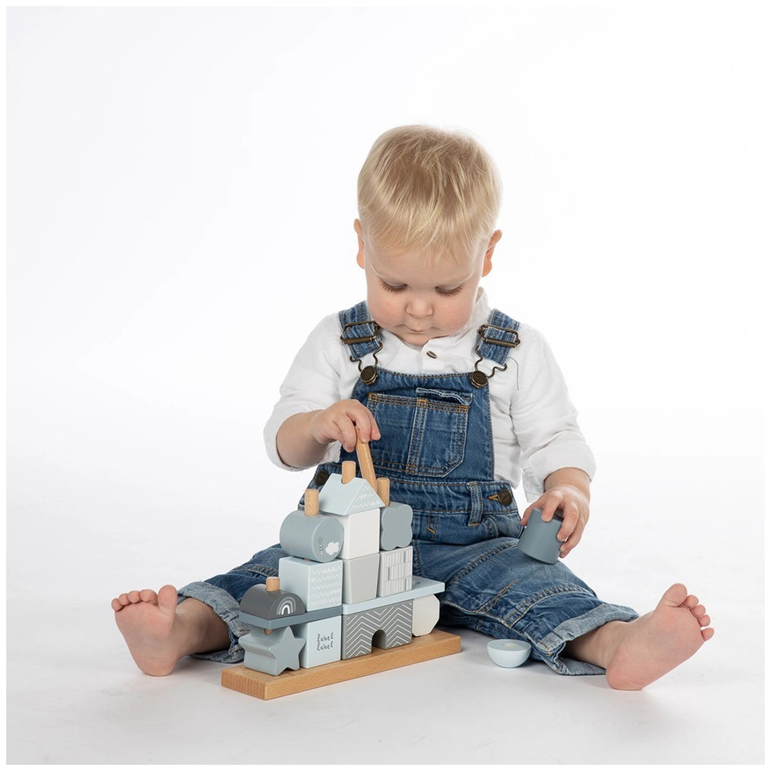 Introducing the Label Label - Stacking Blocks House in Blue, a delightful addition to your child's playtime that combines fun with essential developmental skills. Crafted from high-quality FSC certified beech wood, this stacking toy is not only durable but also environmentally friendly. The vibrant colors of pink, white, and grey are applied using child-safe water-based paint, ensuring that your little one can play safely while enjoying the aesthetic appeal of this charming mini house.