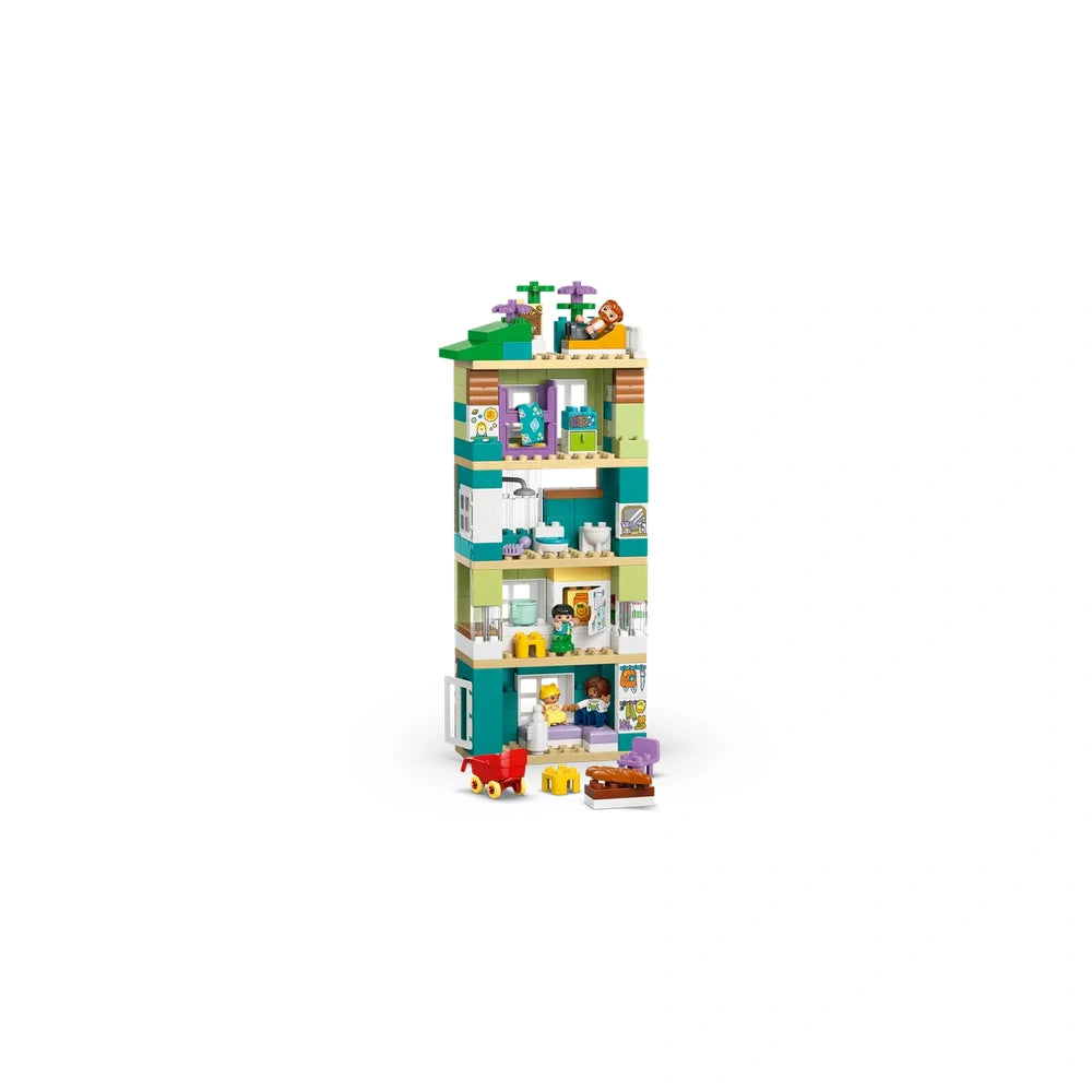 The set is packed with familiar accessories that toddlers will recognize from their own homes, such as a fridge, toilet, baby stroller, and even a roof garden with an insect hotel. These relatable elements not only enhance the play experience but also help children understand everyday routines and responsibilities. As they play, kids will develop storytelling skills and learn about the dynamics of family life, all while having fun.