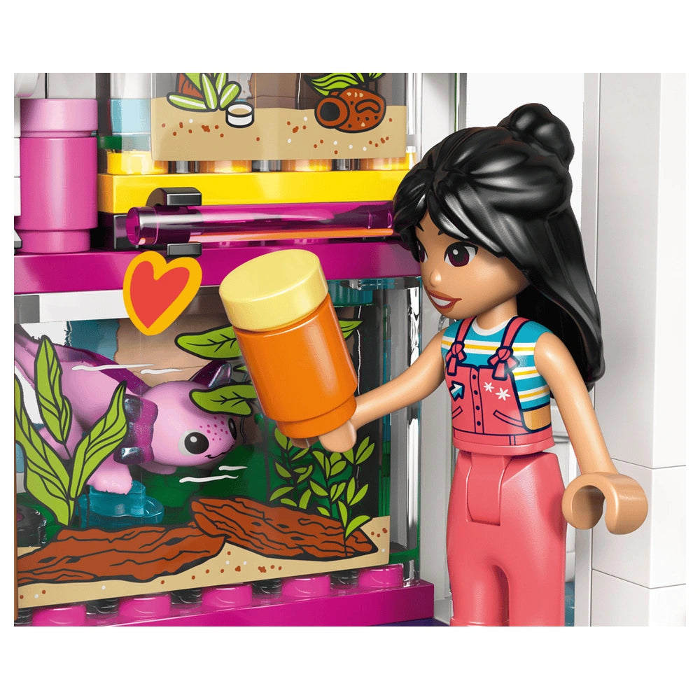 The Liann's Family House set includes four charming minidolls—Liann, Michelle, Paisley, and Nova—along with adorable pet figures, a gecko and an axolotl, each accompanied by their own terrariums. Kids will love exploring the various hobbies that Liann and her friends engage in, from skateboarding and art to caring for their pets. The set is packed with accessories that enhance the play experience, including skateboards, art supplies, and a boom box, allowing children to create their own unique stories.