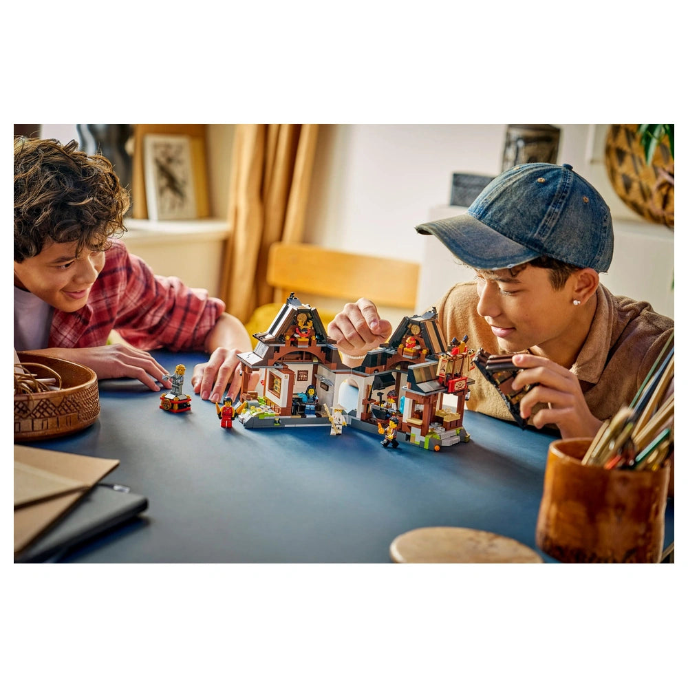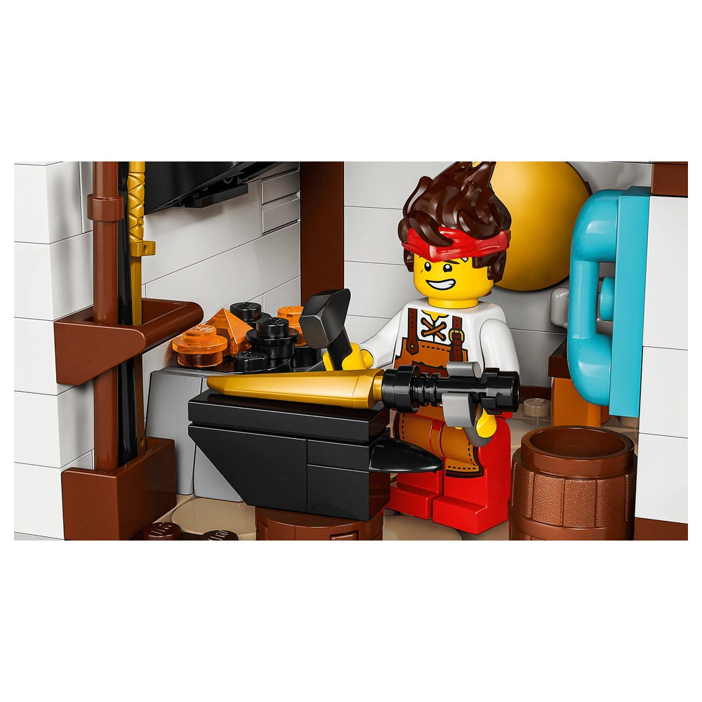 The Four Weapons Blacksmith set is not just a building project; it’s an immersive journey into the world of NINJAGO®. Once completed, the blacksmith shop opens up to reveal a detailed interior, including a bedroom and a forge filled with accessories that pay homage to the series' history. This attention to detail ensures that fans can relive their favorite moments from the show while enjoying the creative process of building. Hidden surprises, such as ninja stickers behind removable helmet and hood displays, add an extra layer of excitement and discovery.
