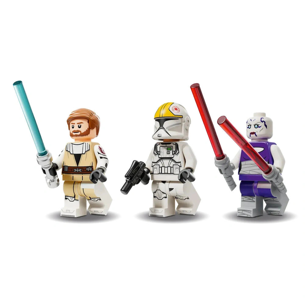 Included in this set are three highly detailed LEGO Star Wars minifigures: the heroic General Obi-Wan Kenobi, the formidable Asajj Ventress wielding two red Lightsabers™ with unique curved hilts, and a Clone Pilot armed with a blaster pistol. These characters are perfect for staging thrilling duels and epic confrontations, allowing kids to explore the rich narratives of the Star Wars saga. The combination of these minifigures with the starfighter enhances the play experience, making it a must-have for any Star Wars enthusiast.