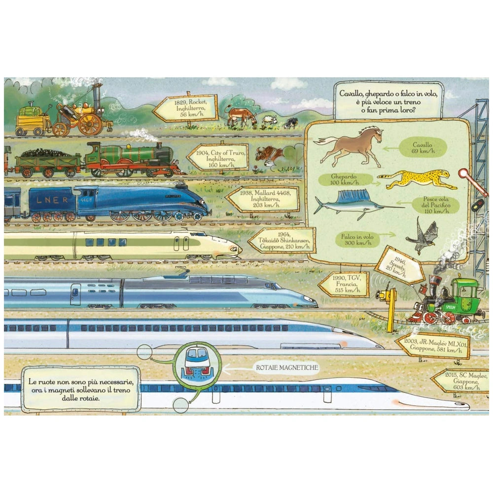 The beautifully illustrated pages transport readers to iconic locations, from the first steam locomotives in England to the modern Japanese Shinkansen. Each turn of the page reveals intricate details that spark curiosity and encourage exploration. Children will not only learn about the history of trains but also about the engineering marvels that make them possible, such as the famous Orient Express and the Trans-Siberian Railway.