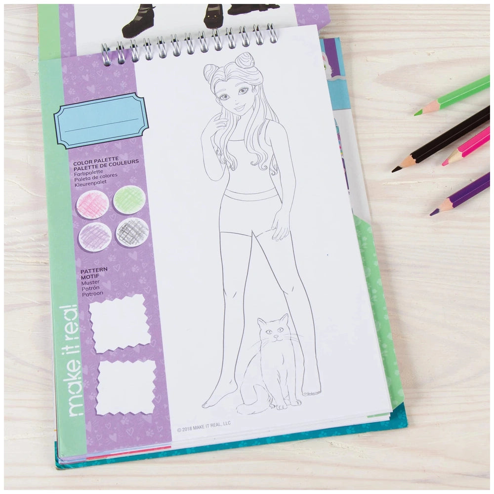 Introducing the "Make It Real - Fashion Design Sketchbook: Pretty Kitty," a delightful and engaging arts and crafts product designed specifically for young aspiring fashion designers. This sketchbook is not just a coloring book; it's a comprehensive toolkit that encourages creativity and self-expression through the lens of fashion design. With its charming cat-inspired theme, the Pretty Kitty sketchbook captivates the imagination of girls who dream of becoming fashionistas.