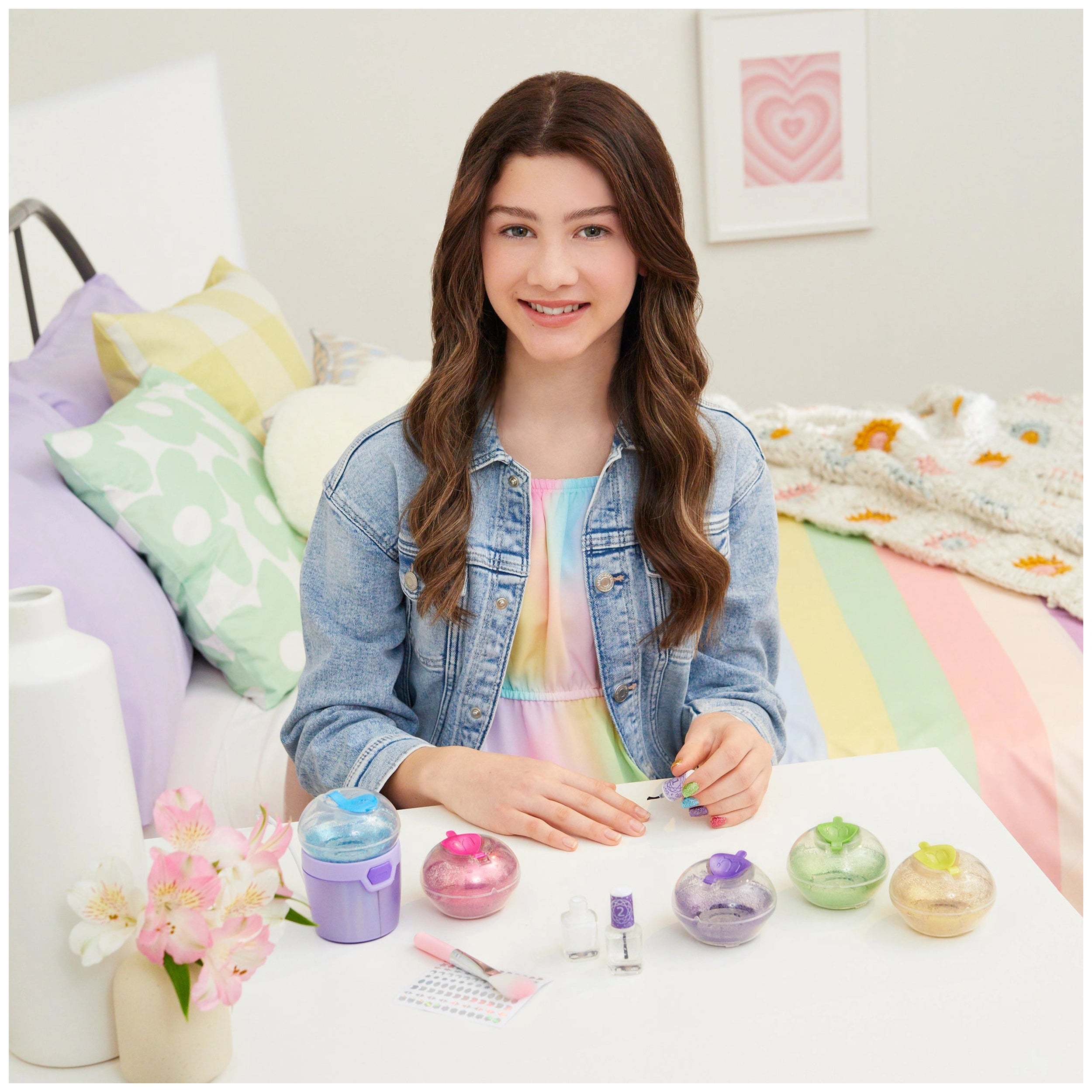 The Party Nails Glitter Nail Studio includes everything needed to create up to 500 stunning glittery nails. The process begins with the application of the Sparkle Primer, which prepares the nail for a dazzling transformation. Once the primer is applied, tweens can insert their finger into the Sparkle Spinner, where a mesmerizing glitter vortex will envelop their nail in seconds. This unique feature not only simplifies the nail decorating process but also ensures that the results are consistently impressive and eye-catching.