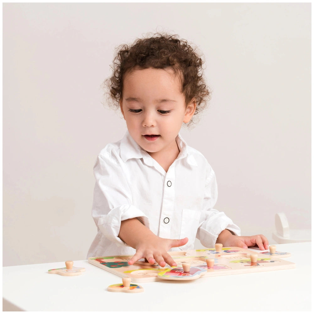 Crafted from FSC® 100% certified wood, this peg puzzle is not only durable but also environmentally friendly. Parents can feel confident knowing that they are providing their children with a safe and sustainable toy. The high-quality materials ensure that the puzzle can withstand the rigors of playtime, making it a lasting addition to any child's toy collection.