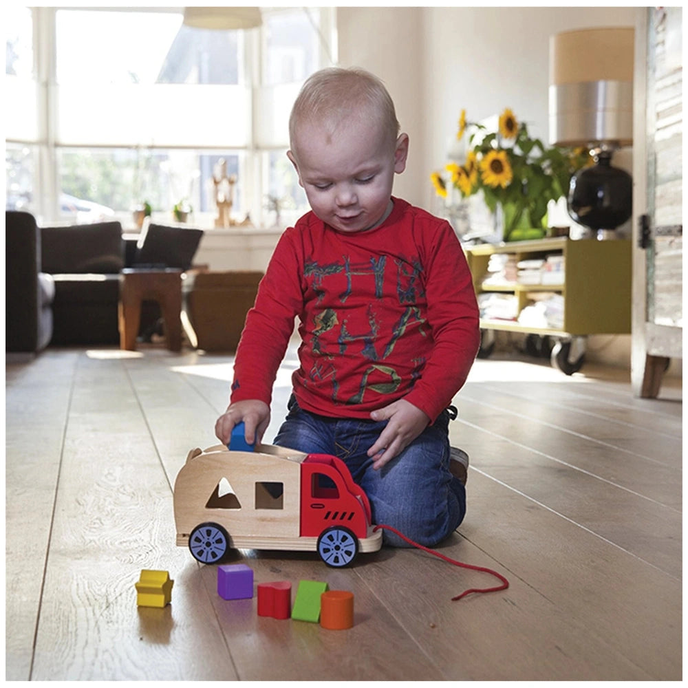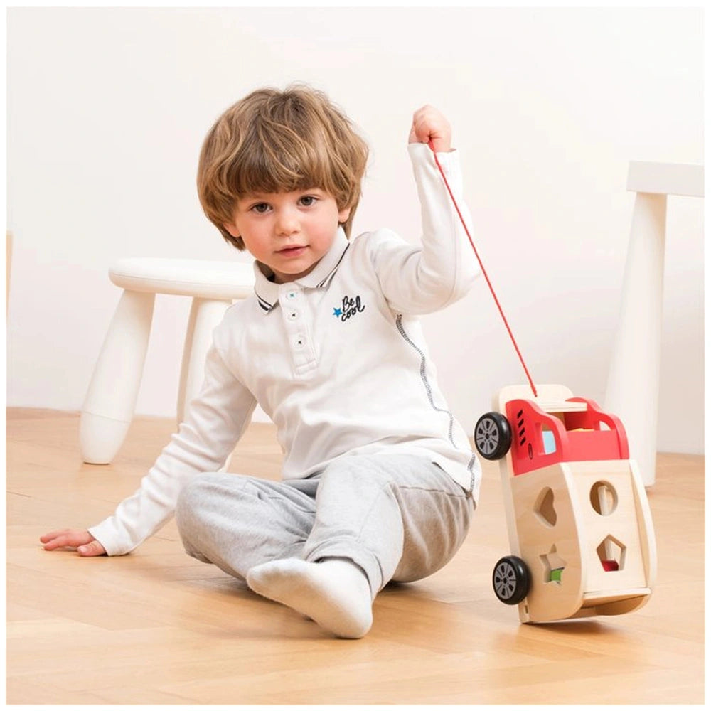 One of the standout features of this toy is its durability. Made from 100% certified FSC® wood, the Shape Sorter Truck is built to withstand the rigors of playtime. The sturdy wooden wheels ensure that the truck can be pulled along on various adventures, making it a perfect companion for outdoor strolls. The bright red cord allows little ones to easily tow their truck, adding an element of mobility to their play.