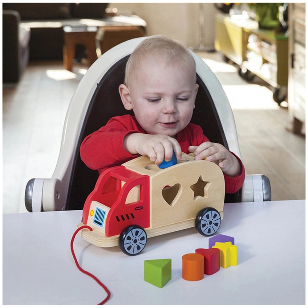 Introducing the New Classic Toys Shape Sorter Truck, an engaging and educational baby activity toy designed for children aged 12 months and older. This beautifully crafted wooden toy combines fun and learning, making it an essential addition to your child's playtime. The unique truck design not only captures the imagination but also serves as a practical tool for developing essential skills in young children.