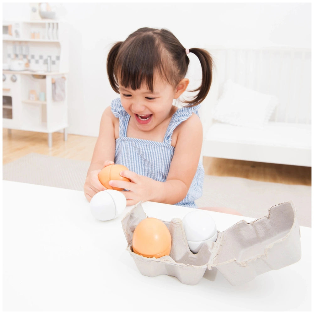 Introducing the New Classic Toys - Toy Eggs, a delightful set of four wooden eggs housed in a charming, realistic egg carton. Designed specifically for imaginative play, these toy eggs are perfect for children who love to engage in pretend professions and role-playing scenarios. As part of the esteemed "Bon Appetit" product line, this set encourages creativity and culinary exploration, making it an essential addition to any child's toy collection.
