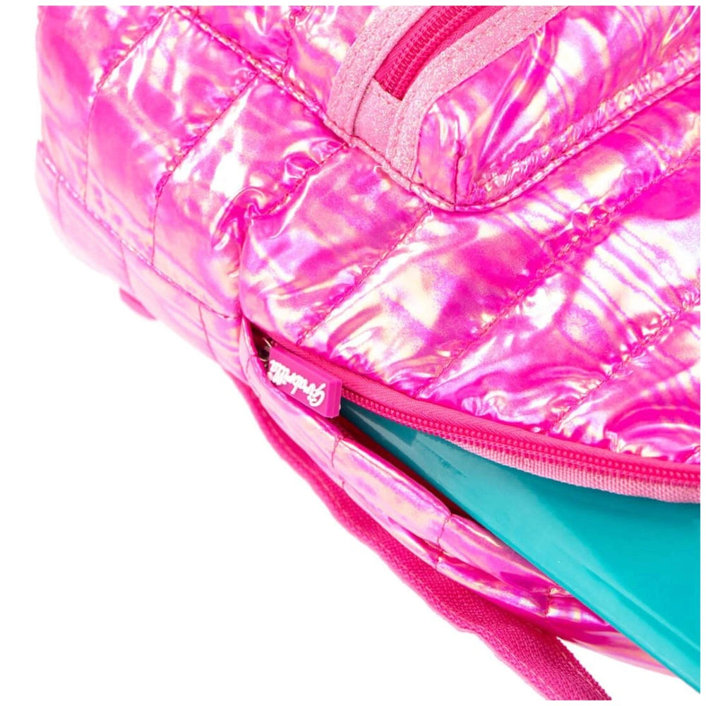 Introducing the Nice - Girabrilla Puffer Casual Backpack, a stylish and functional accessory designed for children aged six and above. This eye-catching backpack is perfect for school, leisure activities, and outdoor adventures. With its shimmering colors and soft iridescent fabric, the Girabrilla Puffer Backpack not only stands out but also offers practicality and comfort for young users.