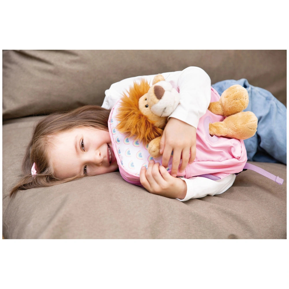 Introducing the NICI Travel Friends Backpack with Soft Toy Lion, a delightful accessory designed for young adventurers. This charming backpack, measuring 26 x 21 x 13 cm, is not just a practical storage solution but also a comforting companion for children on the go. With its vibrant pink rainbow design, it captures the imagination and adds a touch of whimsy to any outing. The combination of functionality and fun makes this backpack an essential item for little ones who want to carry their favorite soft toy wherever they venture.