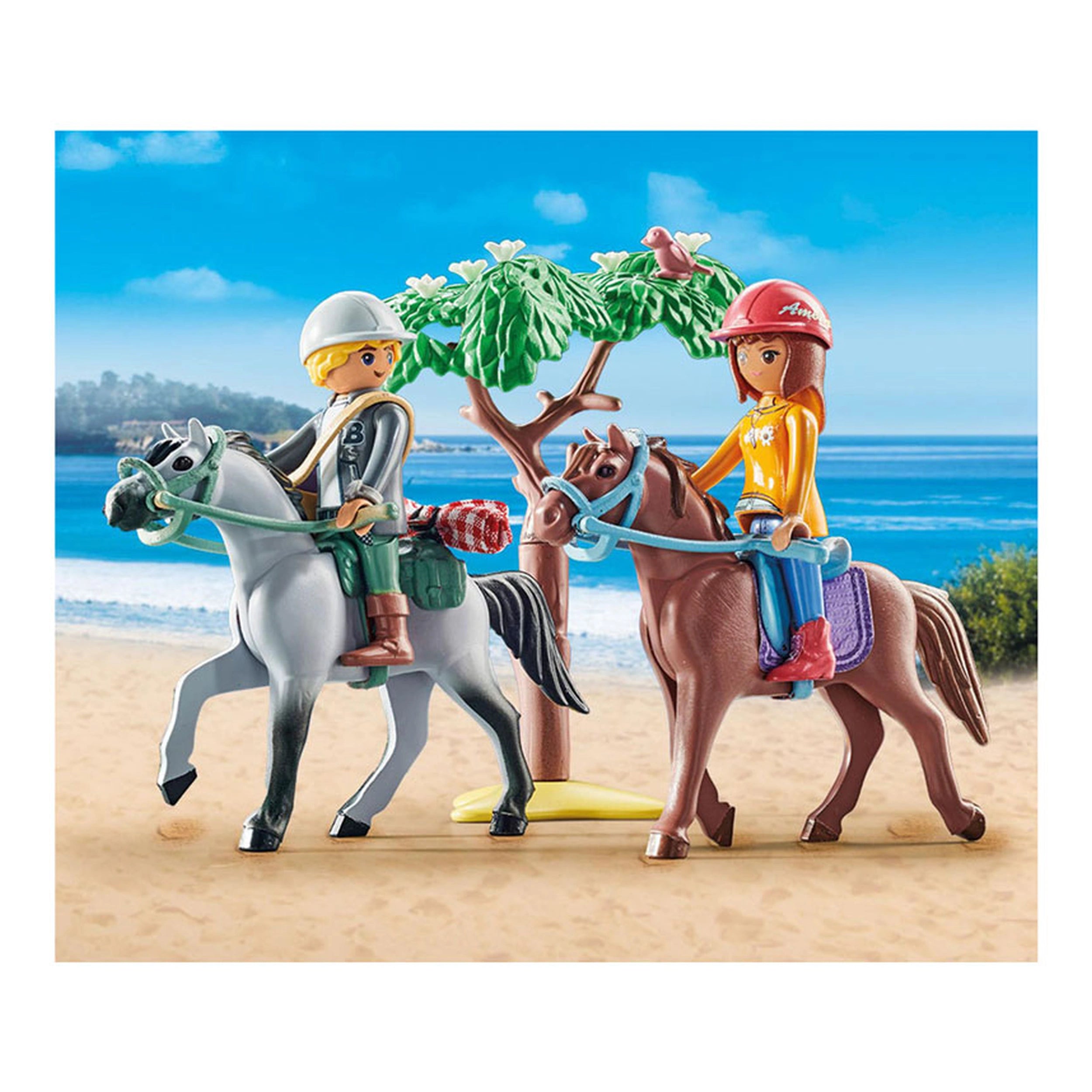 Introducing the Playmobil Country Horse Riding To The Beach With Amelia And Ben - 71470, a delightful playset that invites children to embark on imaginative adventures. This enchanting set features two beloved characters, Amelia and Ben, who are ready to explore the beauty of nature while enjoying a scenic horseback ride along the beach. With meticulously designed figures and accessories, this playset encourages creativity and storytelling, making it an ideal addition to any child's toy collection.